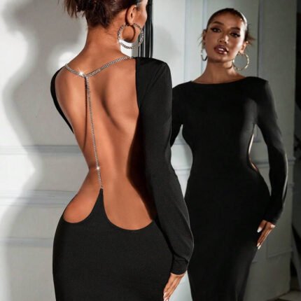 Black Diamond Chain Party Dress