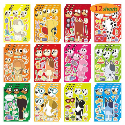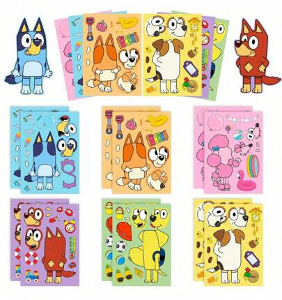 Bluey 6Sheets Cartoon Bluey Make A Face Puzzle Stickers Cute Bingo Funny Dog Decals Decoratio Assemble Jigsaw DIY Sticker Gifts