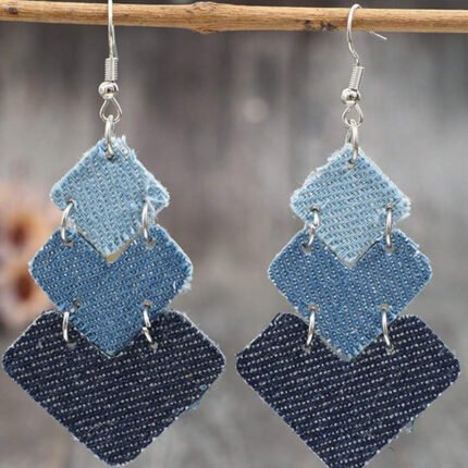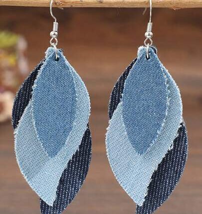1 Pair Western Style S-Shaped Leaf Patchwork Denim-Look PU Leather Creative Earrings