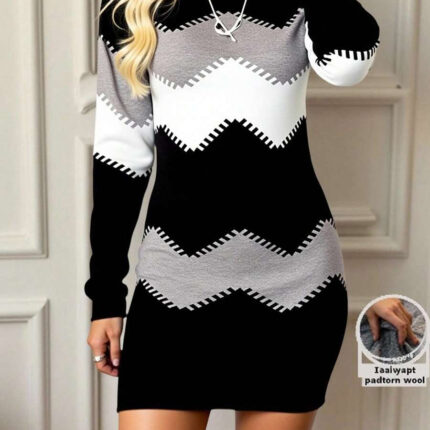 Women’s Trendy Color Block Dress – Long Sleeve Fall Outfit
