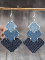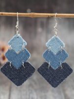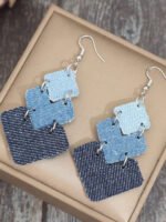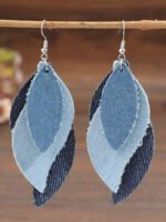 3 reviews for 1 Pair Western Style S-Shaped Leaf Patchwork Denim-Look PU Leather Creative Earrings