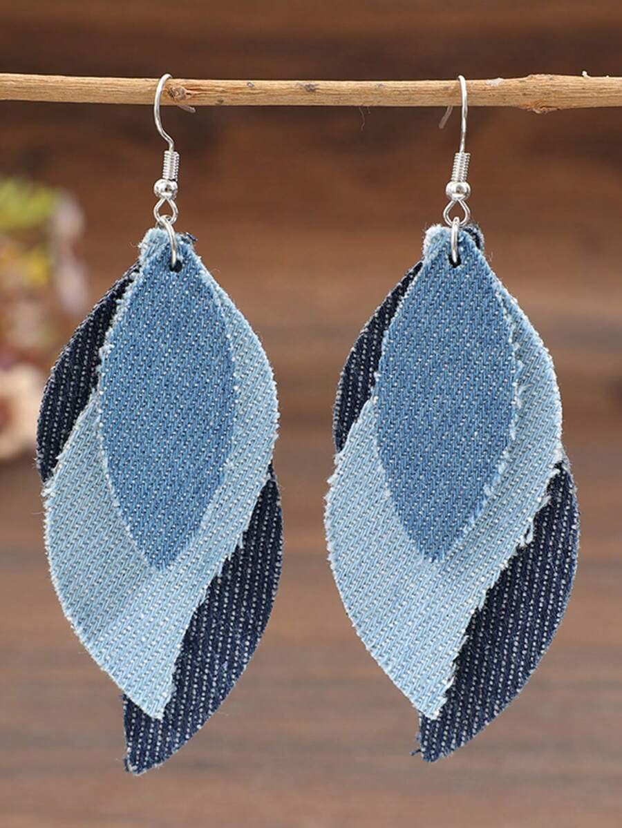 1 Pair Western Style S-Shaped Leaf Patchwork Denim-Look PU Leather Creative Earrings