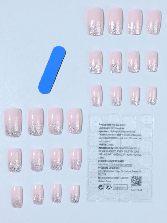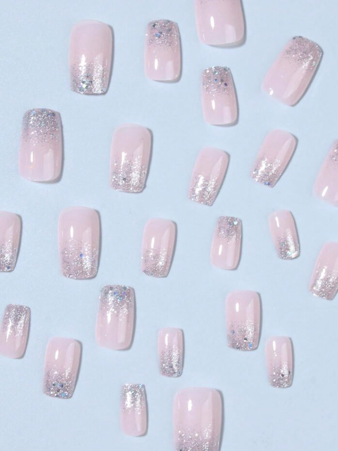 24pcs False Elegant Pink Gradient Glitter French Short Nails