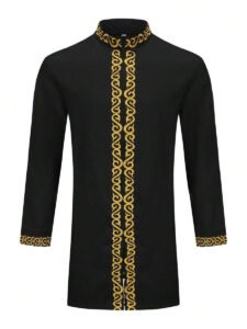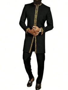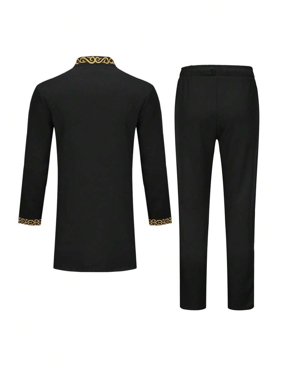 3 reviews for 2pcs/Set Men’s Solid Color Round Neck Embroidered Long Sleeve Suit Jacket & Pants, African National Style Wedding Suit 2024