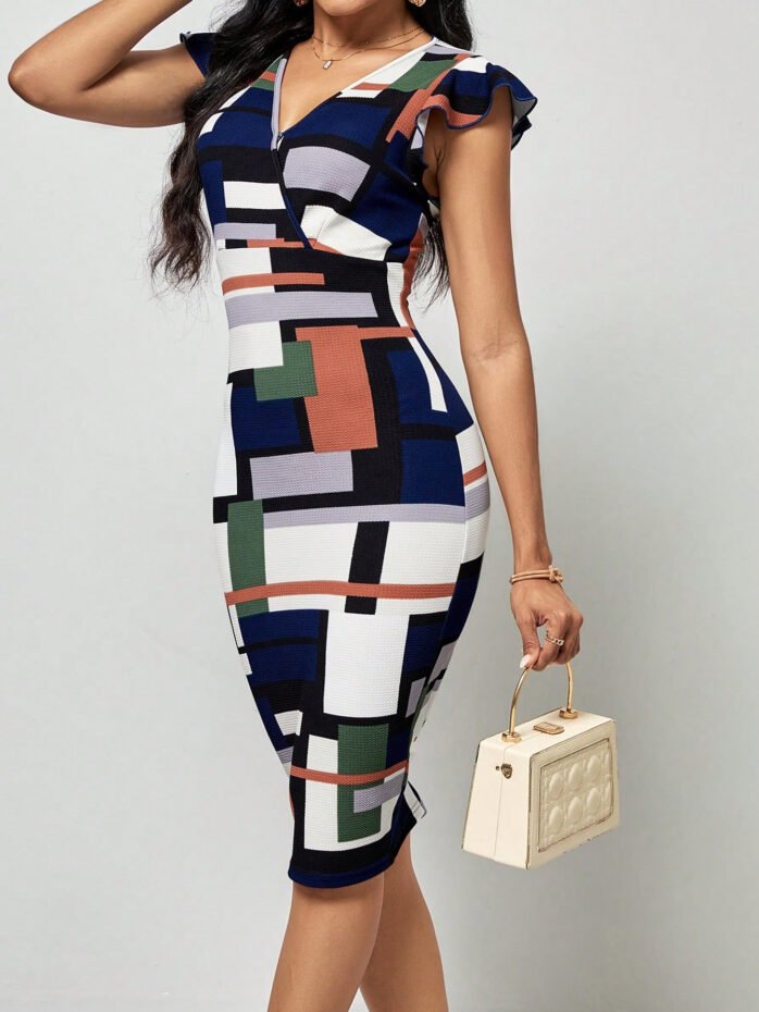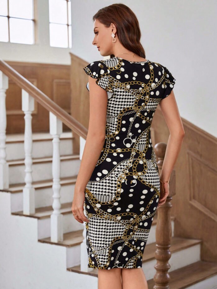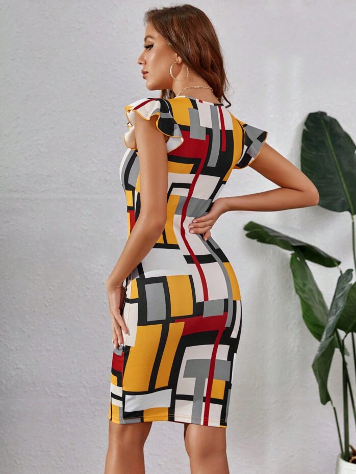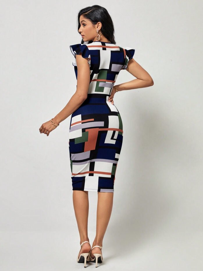 Be the first to review “Geo Print Ruffle Trim Dress” Cancel reply