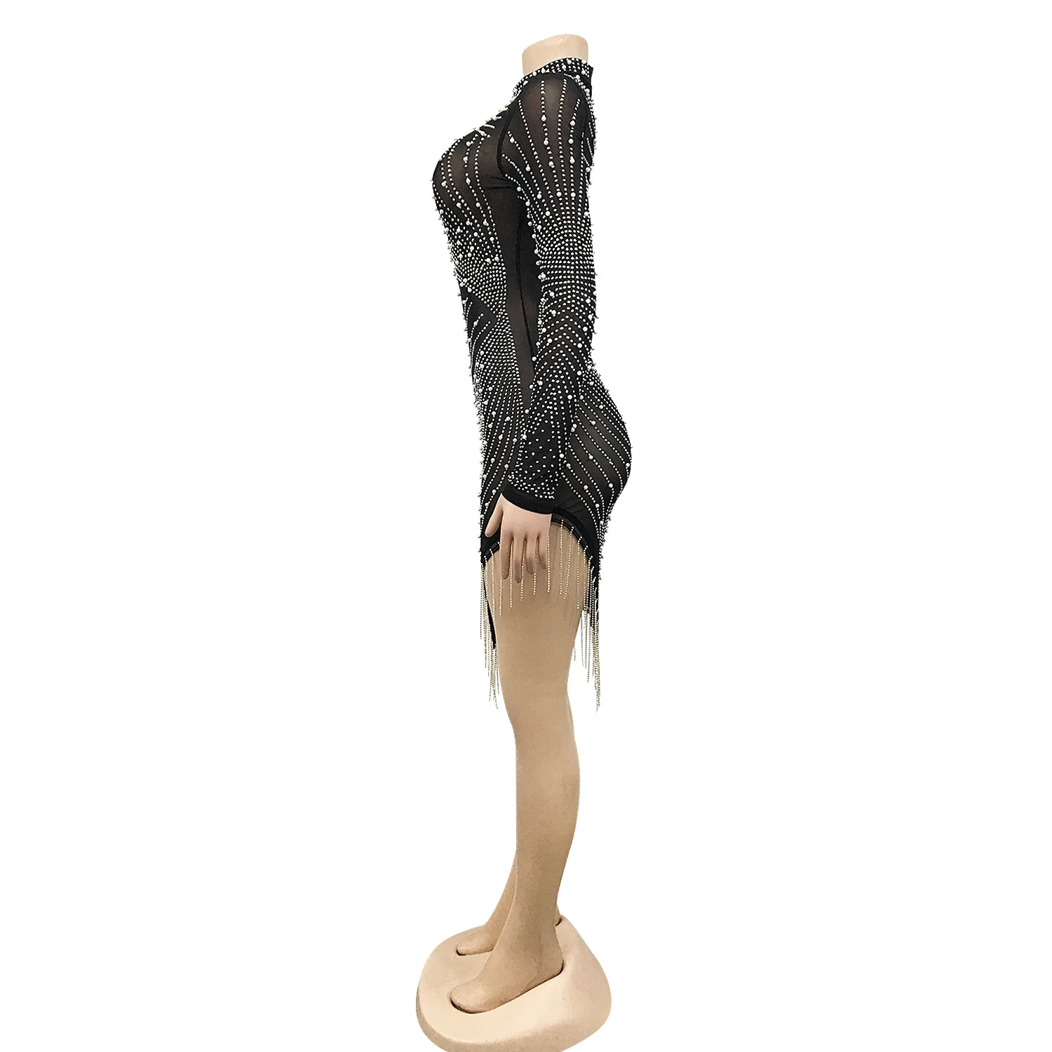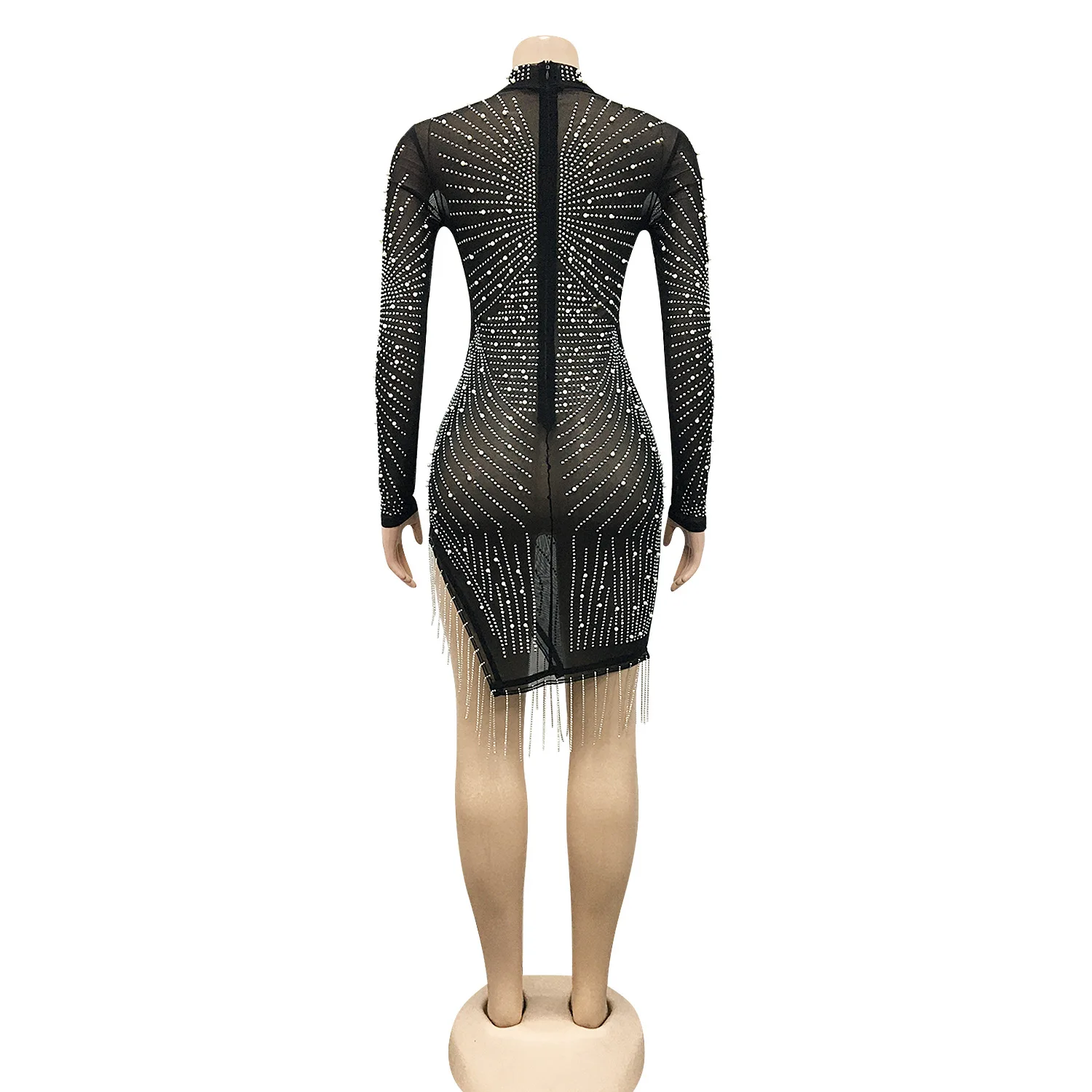 A Diamond O-neck Long Sleeve Party Mini Dress