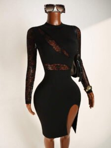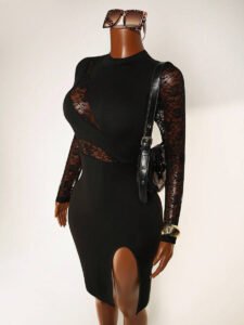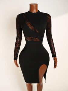 3 reviews for BamGleam Women’s Contrast Lace Slit Bodycon Dress Fall Cloth For Women