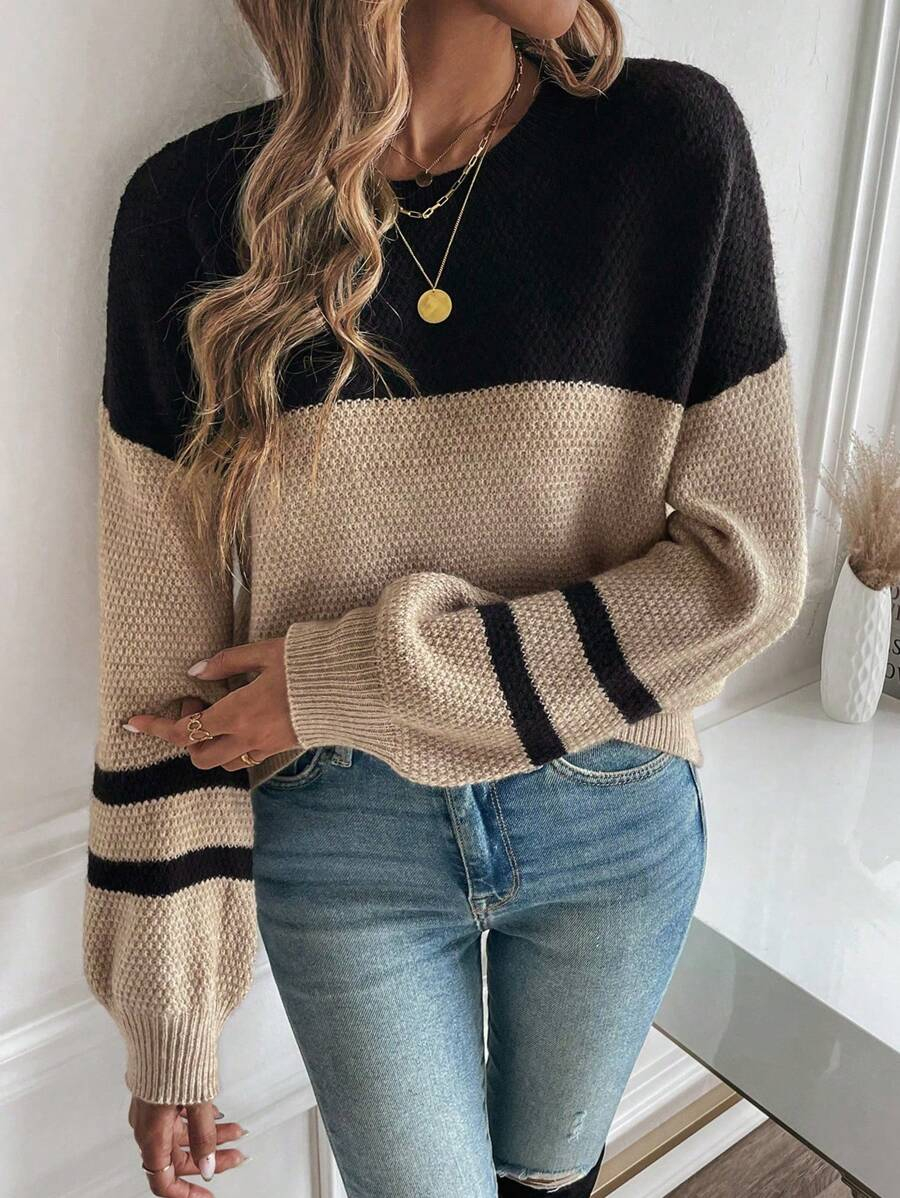 3 reviews for Calvaya Color Block Drop Shoulder Sweater,Long Sleeve Tops Knit Pullover Fall Winter Outfit