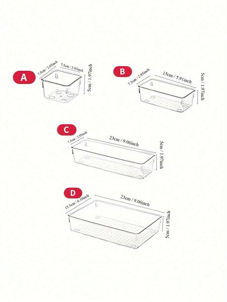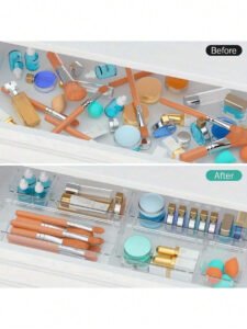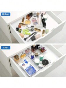 Tags: bathroom organizer, bedroom storage, clear plastic drawer organizer set, clear storage bins, desk organizer, drawer organizer trays, home organization, kitchen organizer, makeup organizer, multi-size storage bins, office storage, storage trays, vanity organizer