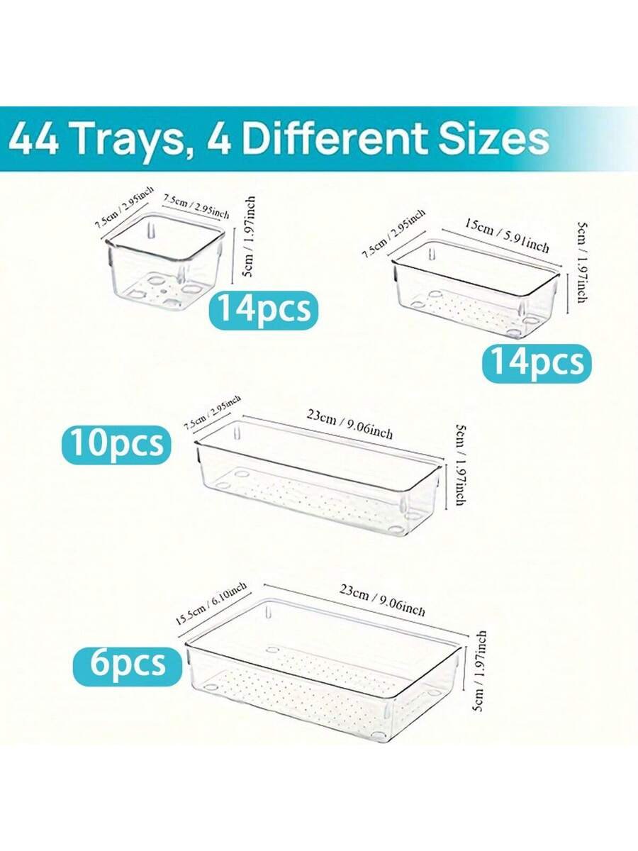 Clear Plastic Drawer Organizer Set (13/25/44pcs) – Versatile Storage Trays for Bathroom, Vanity, Kitchen & Office