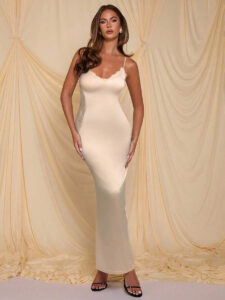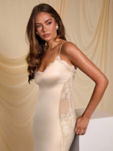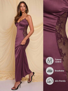 3 reviews for COSMINA Elegant Lace Patchwork Long Dress, Suitable For New Year Party, Valentine’s Day, Wedding Guest Dress For Women, Sexy