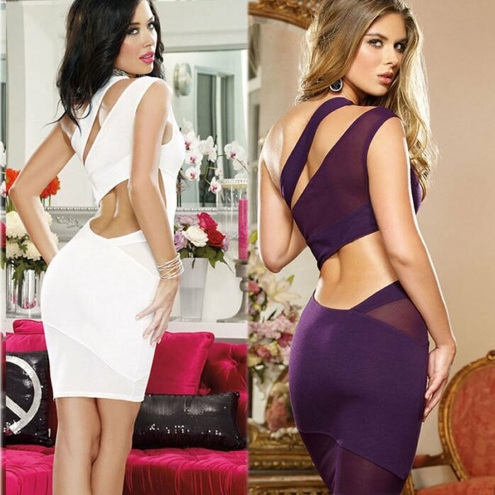 Sexy Women's Choker  V neck Sleeveless Hollow out Evening Party Club Short Mini  Dress