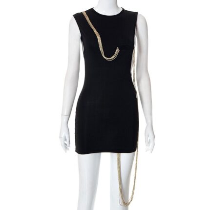 Sleeveless Party Mini Dress Women Hollow Out Both sides Outfits Summer Chain Elegant Dress