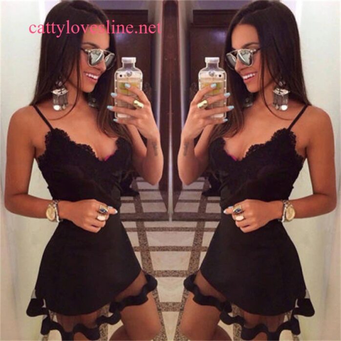 Women’s sexy lace stitched backless, sleeveless lace hem dress