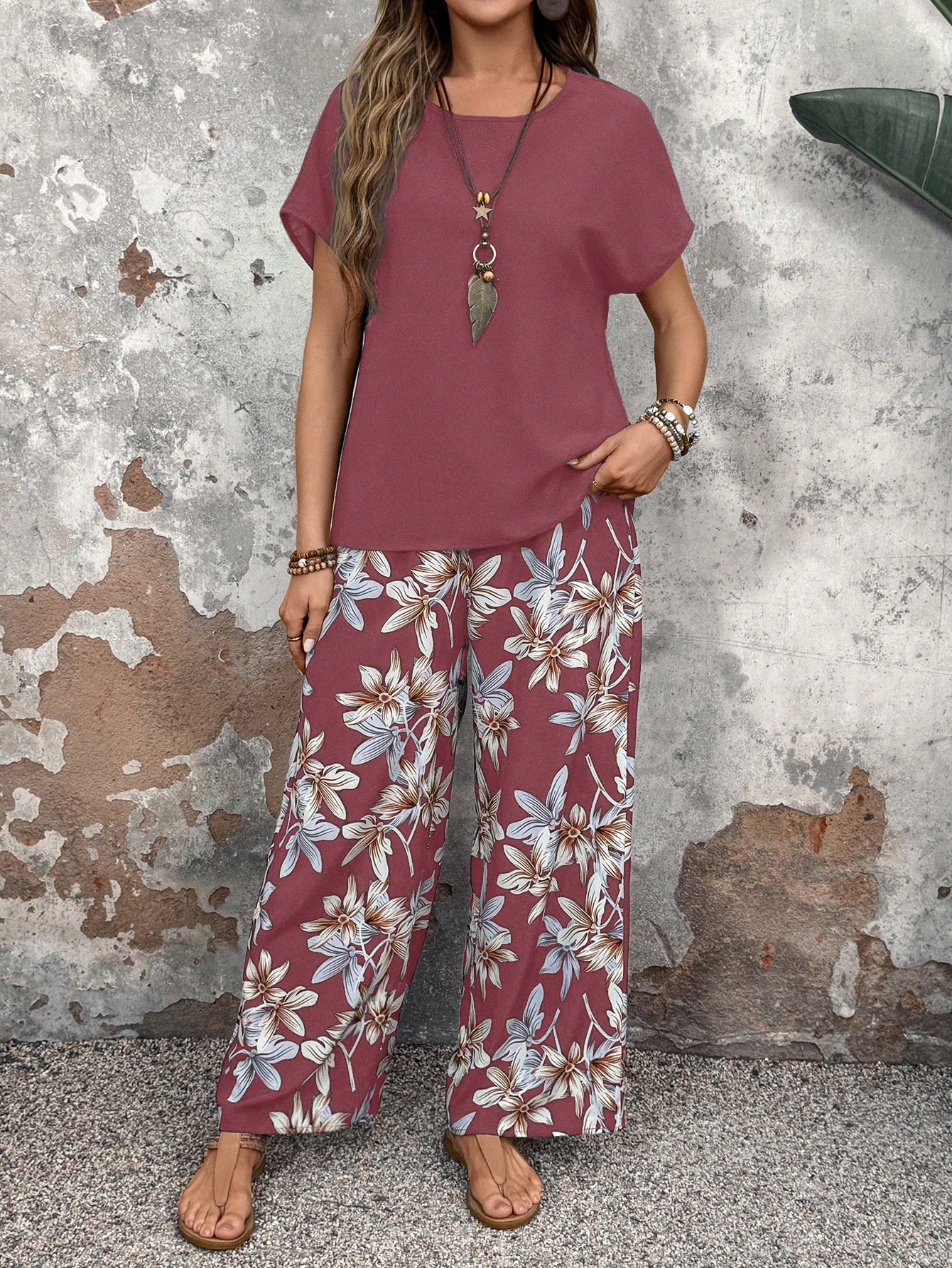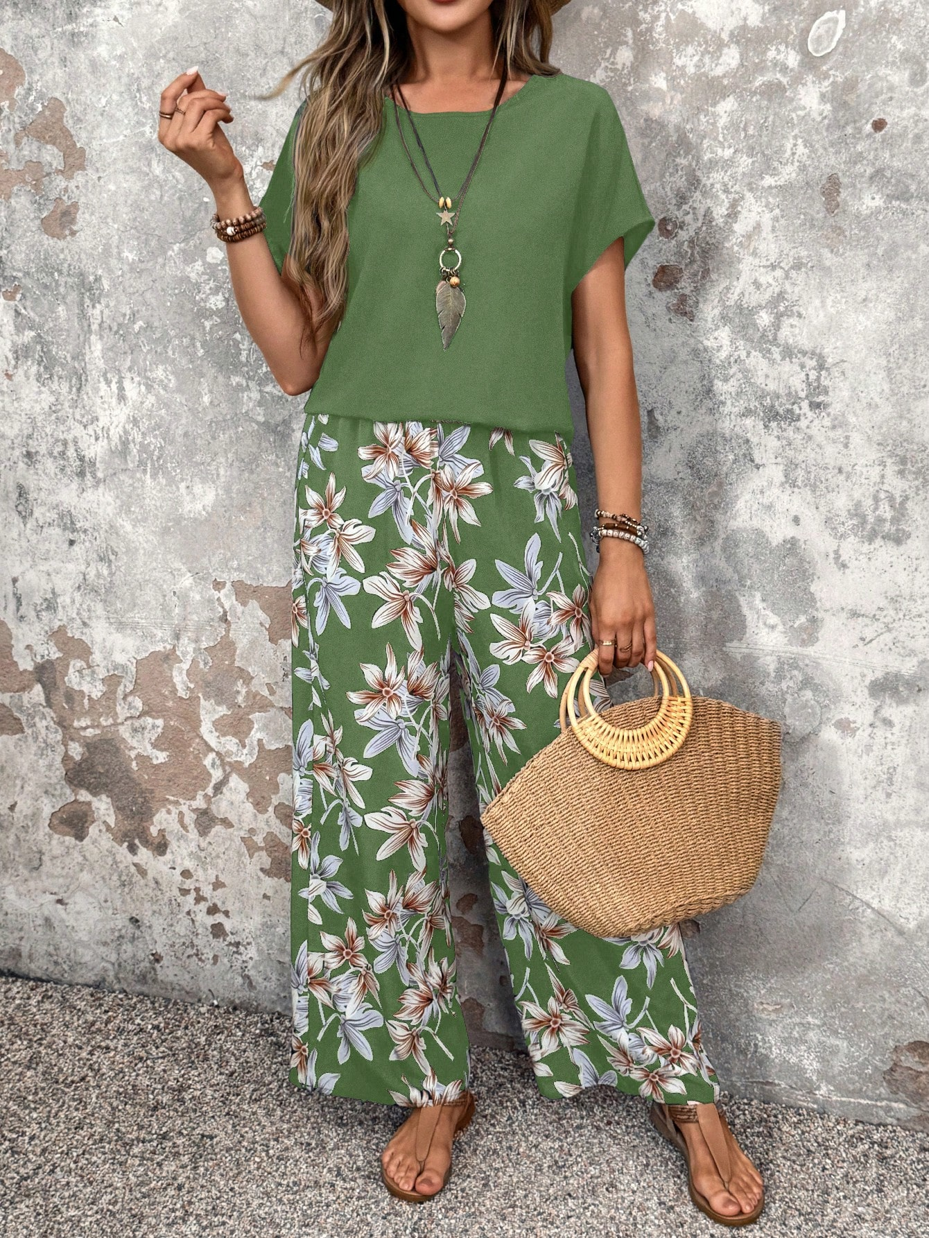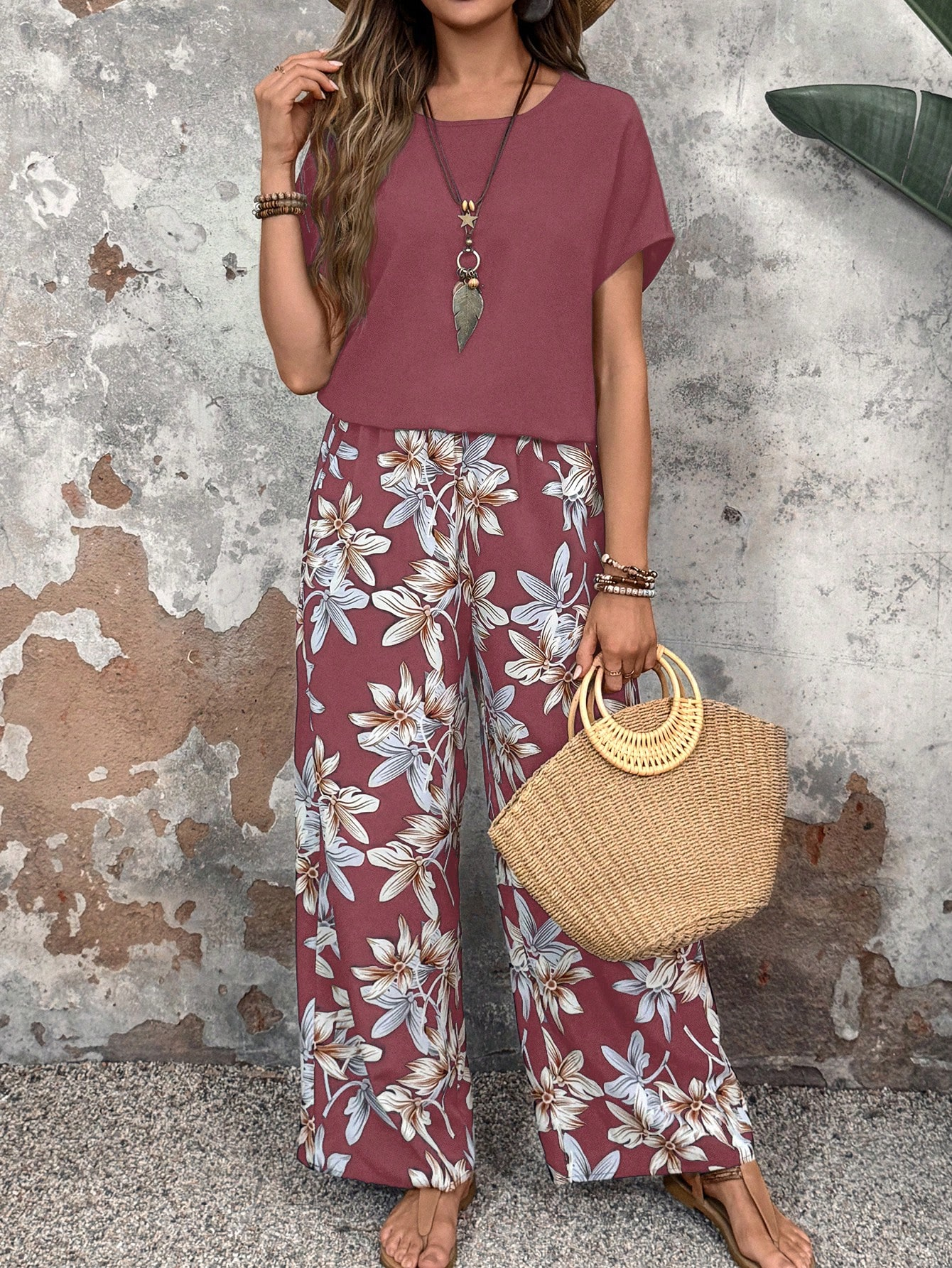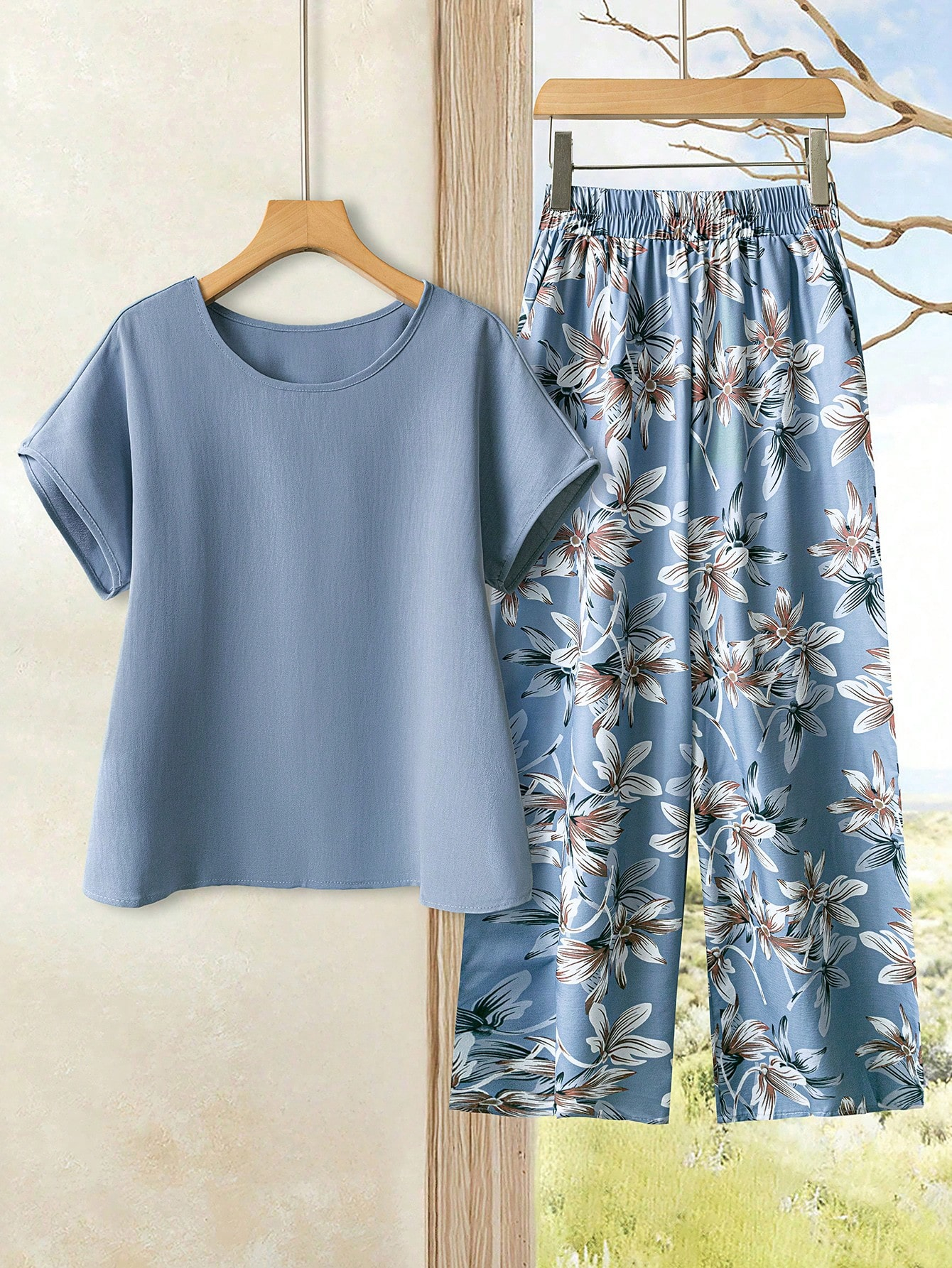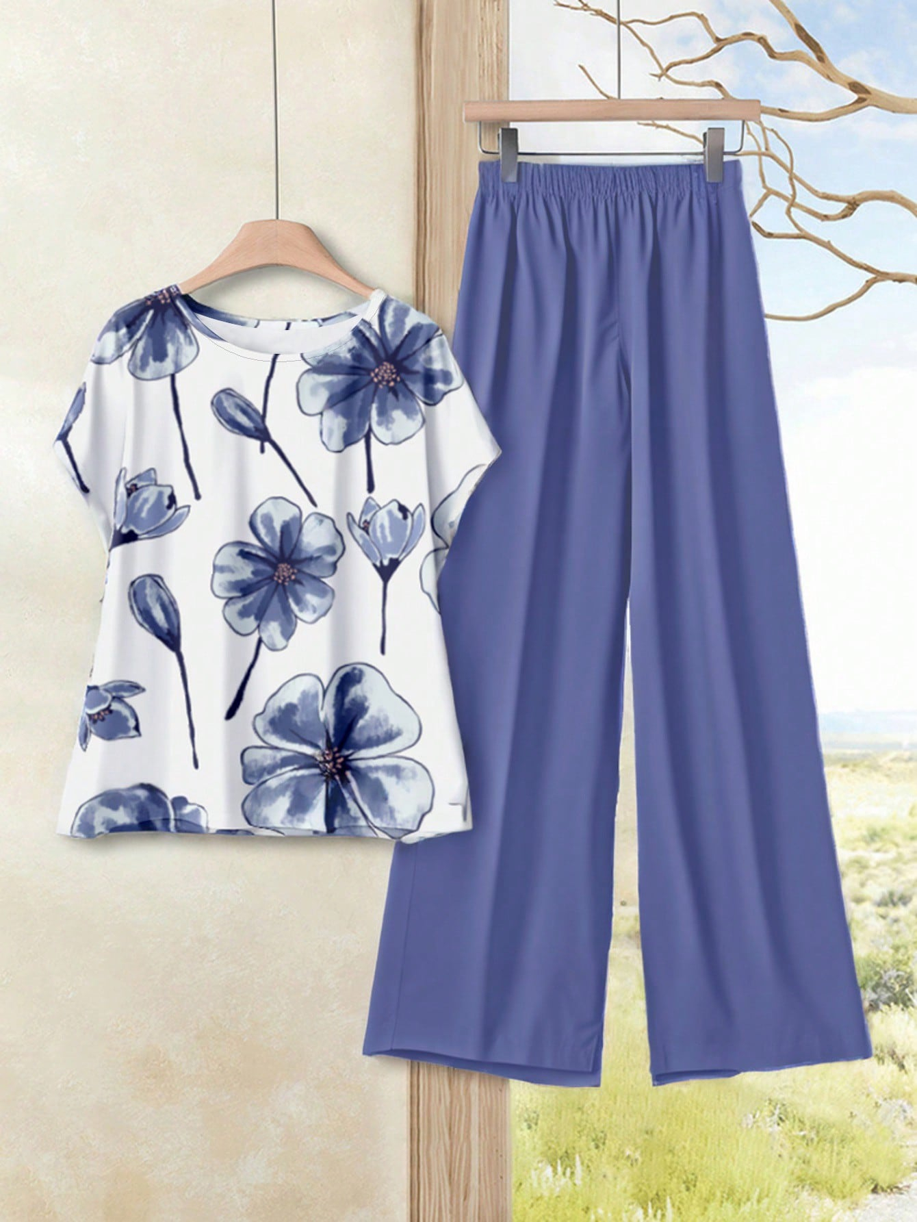 Floral Print Two Piece Outfit