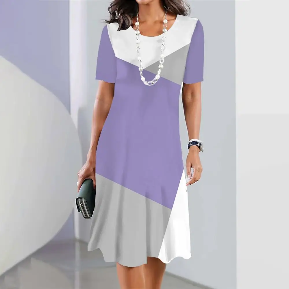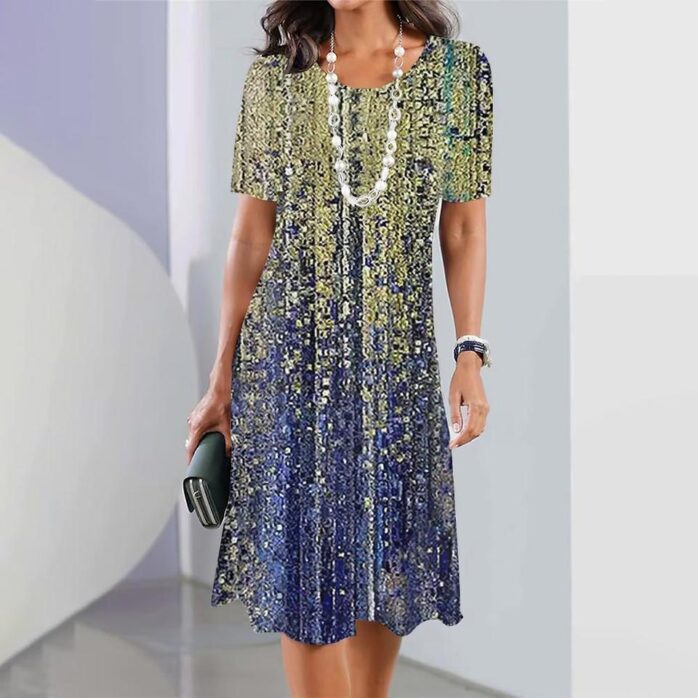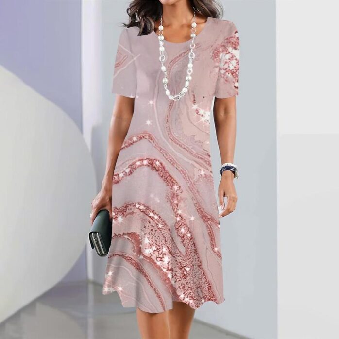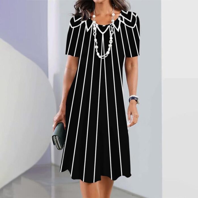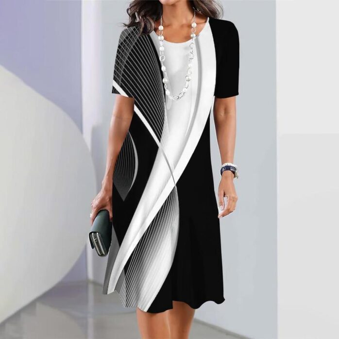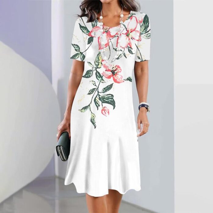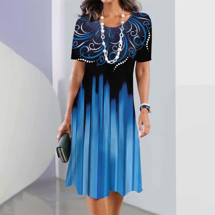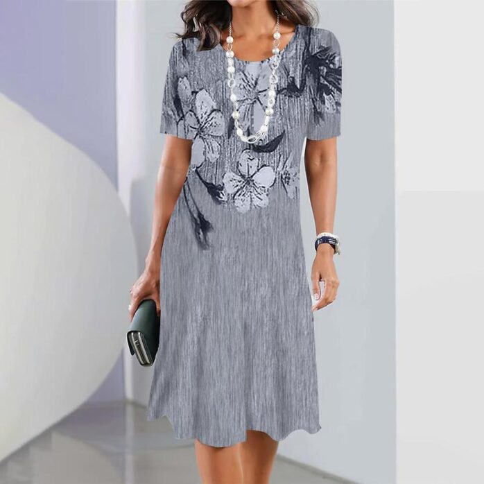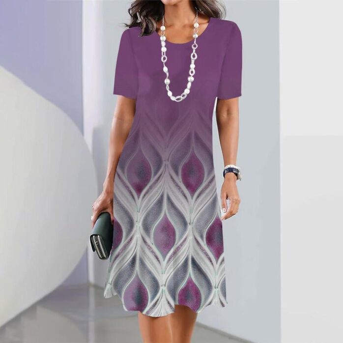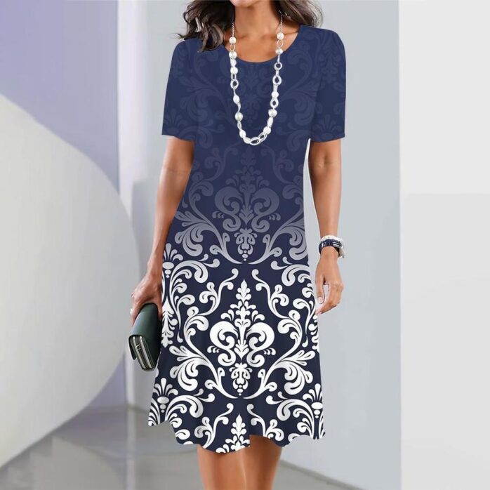 Plus Size Fashion Women Printed O-Neck Short Sleeve Casual Dress