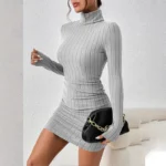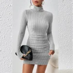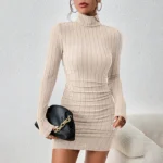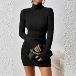 Knitted Bodycon Dress for Women – Turtleneck Long Sleeve Sheath Mini Party Dress