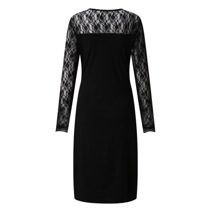 Long Sleeve Elegant Office Lady Women Black Lace Evening Clubwear Slim Dress - Cattyloveline.net