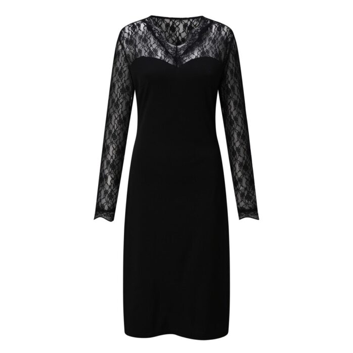 Home Women Apparel Women Clothing Long Sleeve Elegant Office Lady Women Black Lace Evening Clubwear Slim Dress