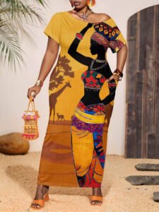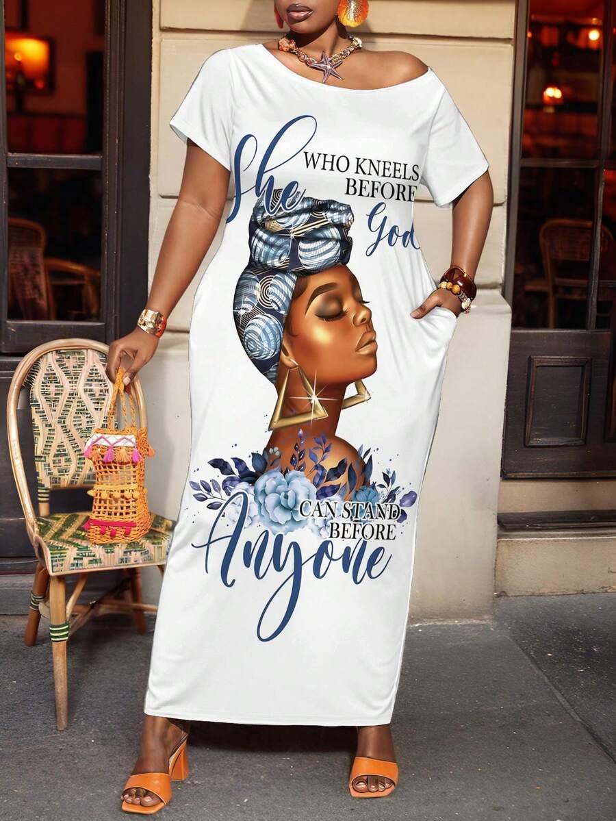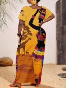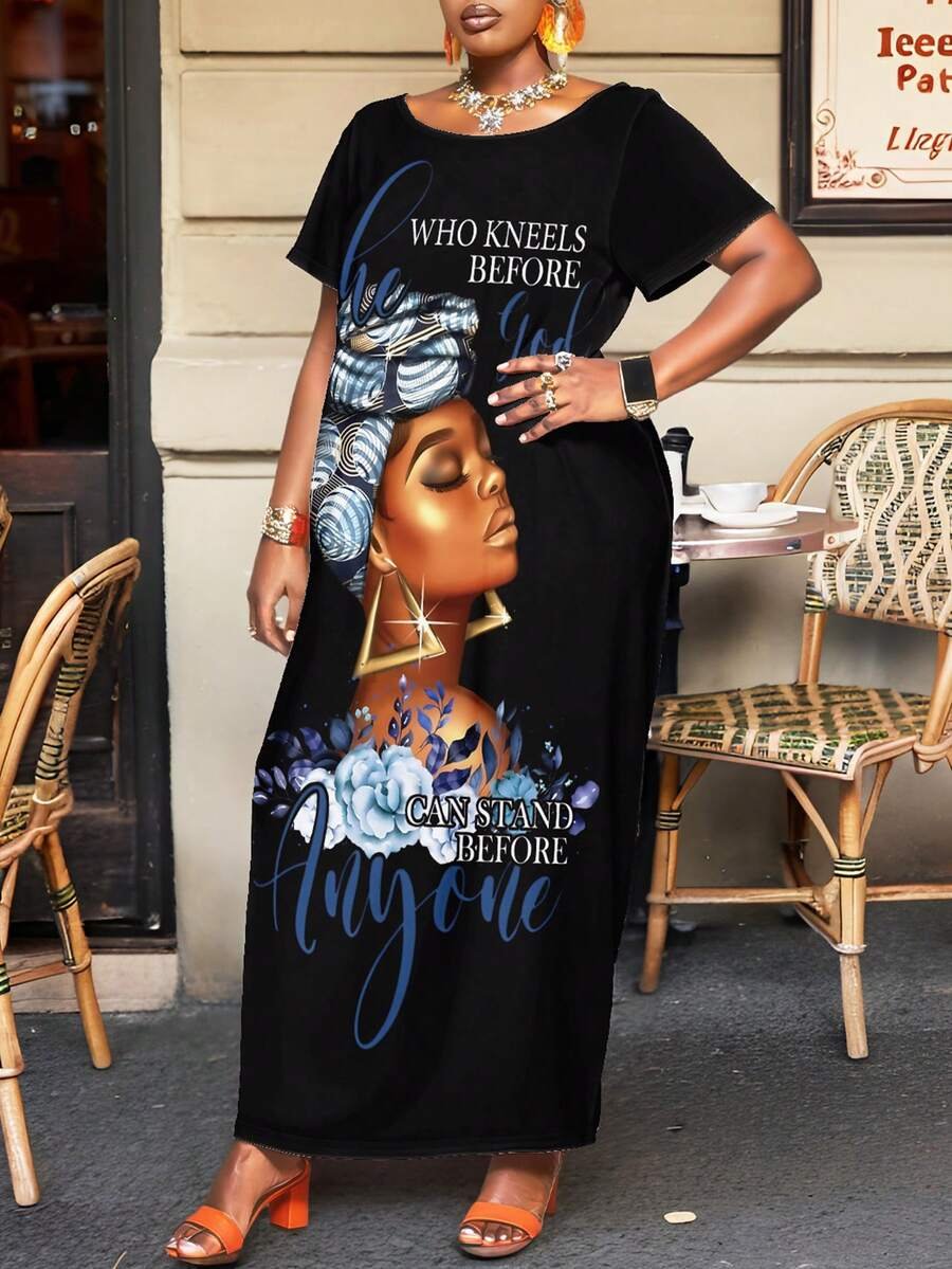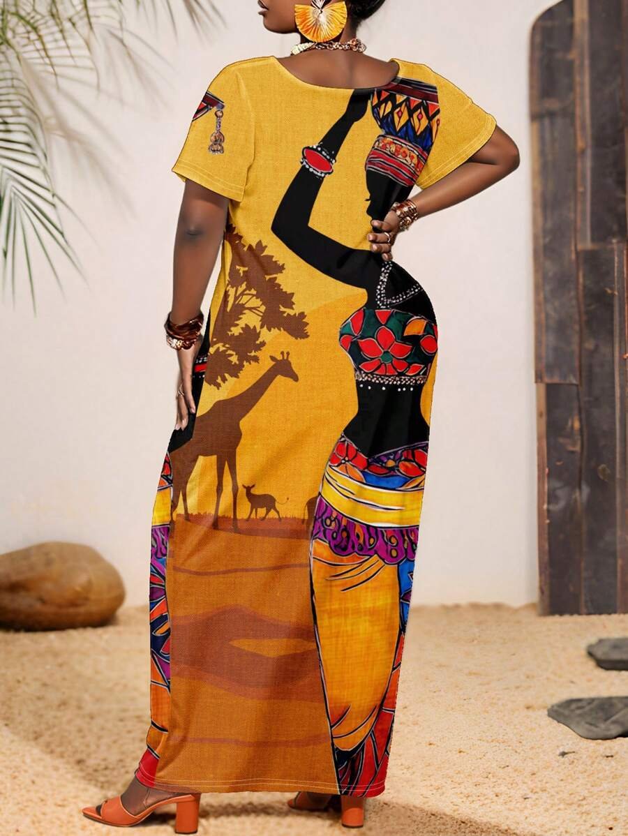 3 reviews for Maweii Plus Size Women Animal & Tree Print Round Neck Short Sleeve Pocket Dress, For Summer