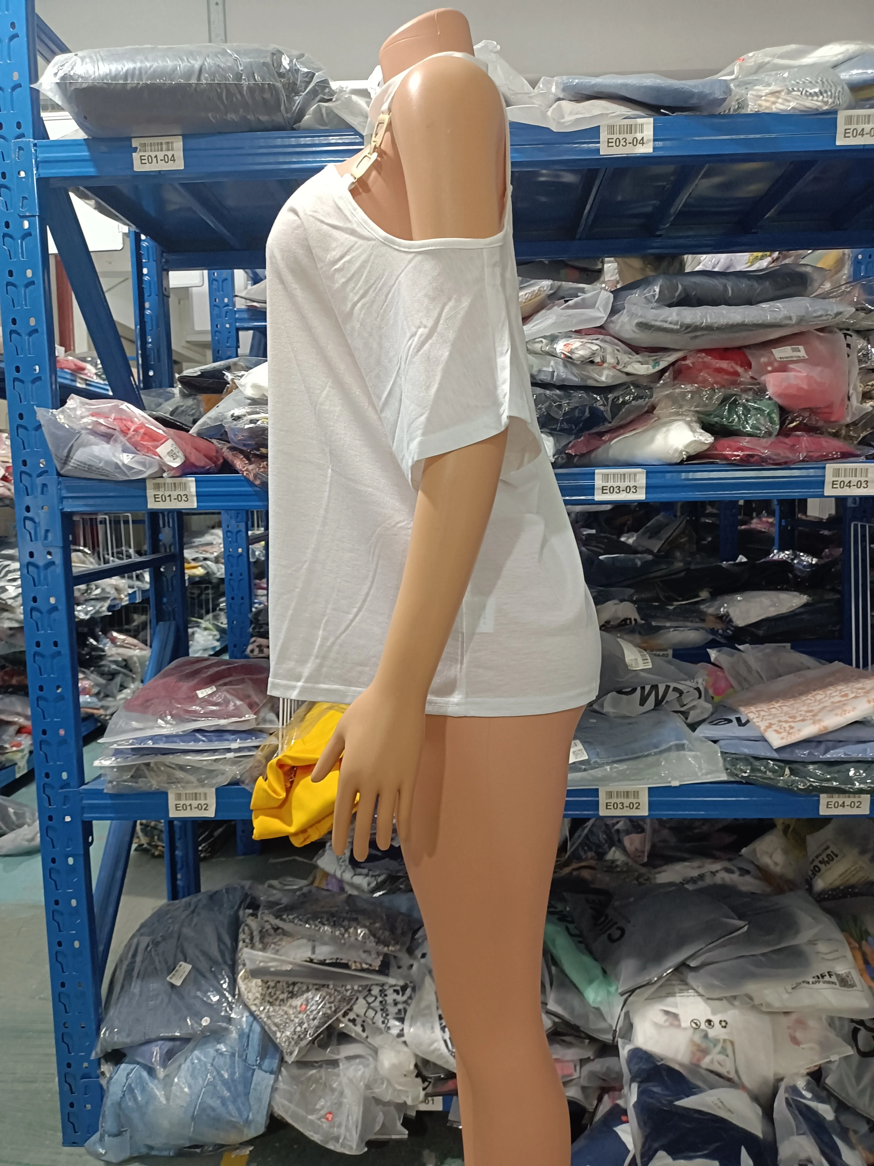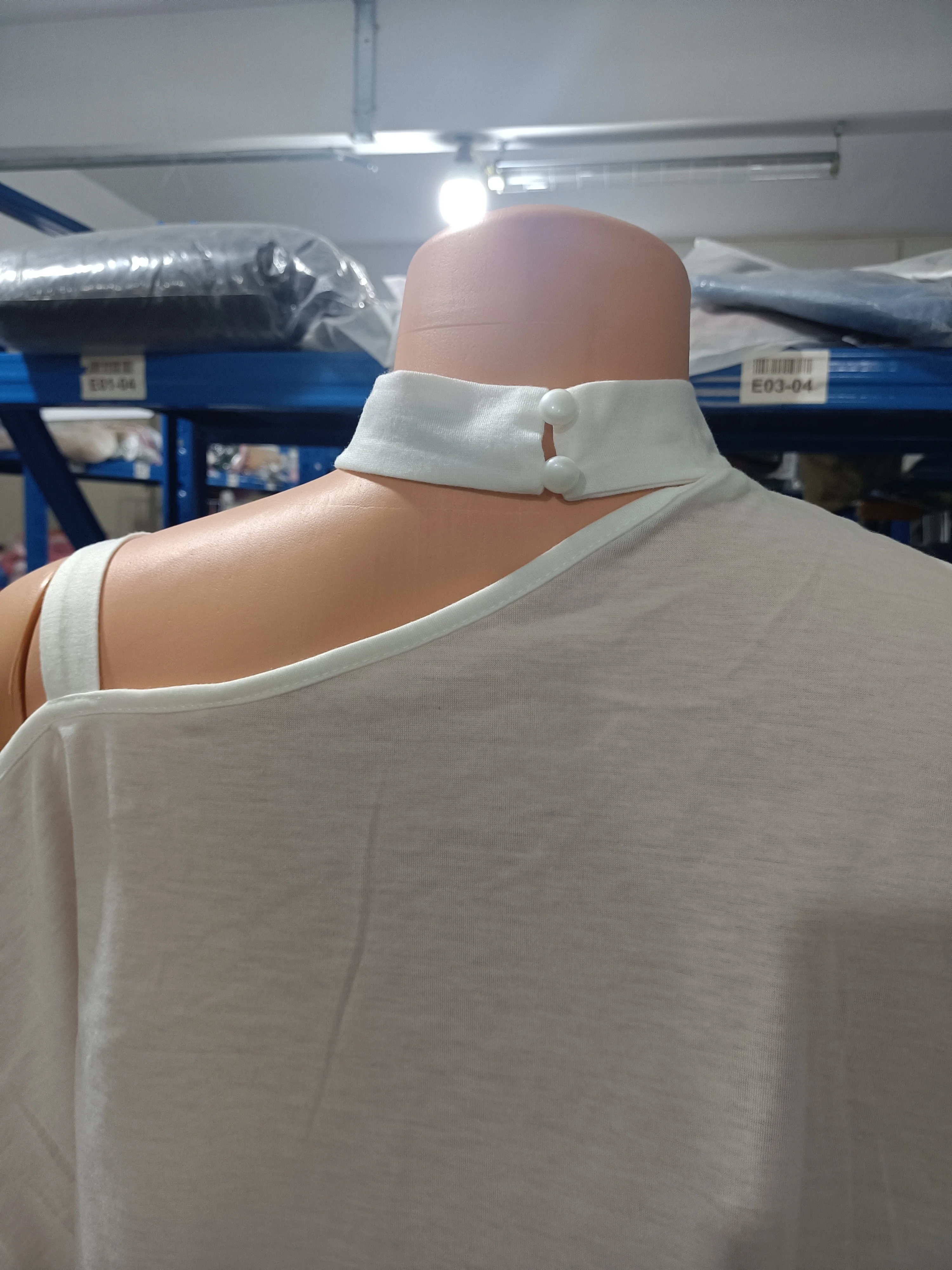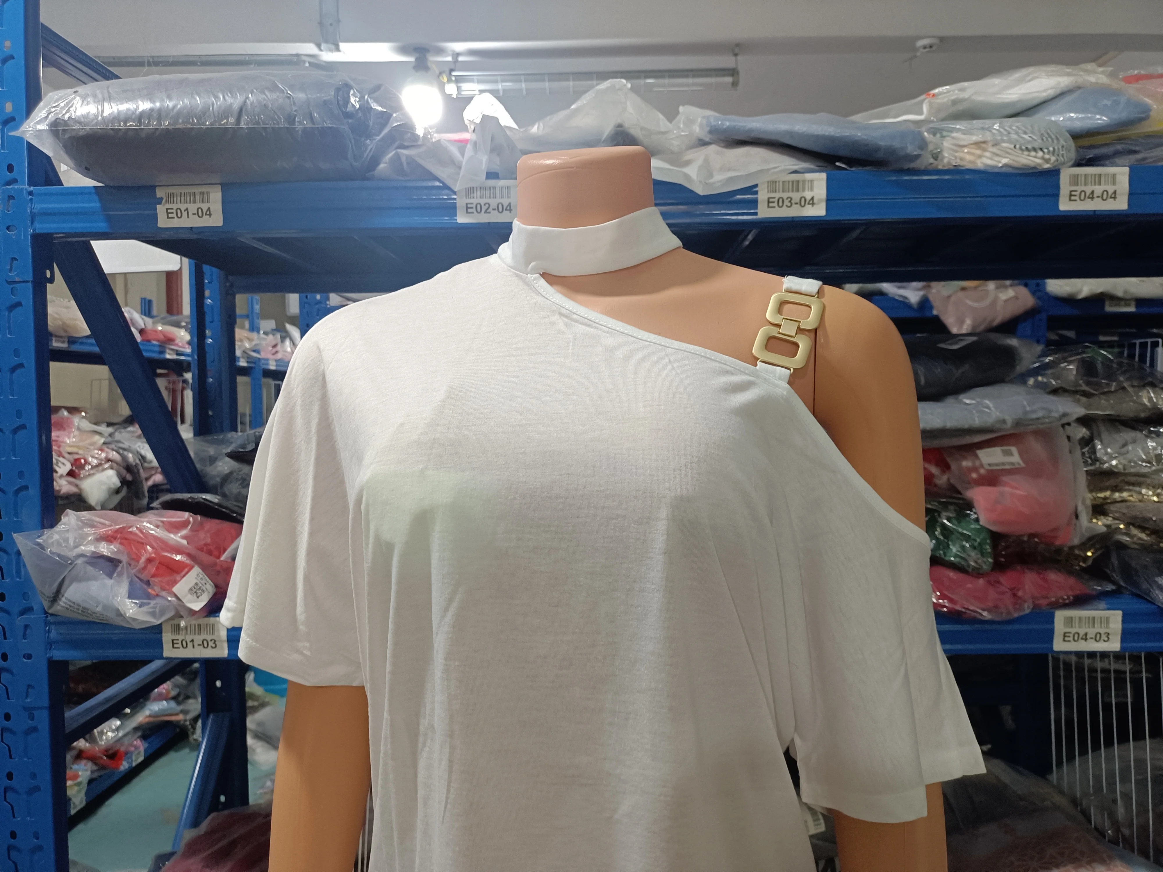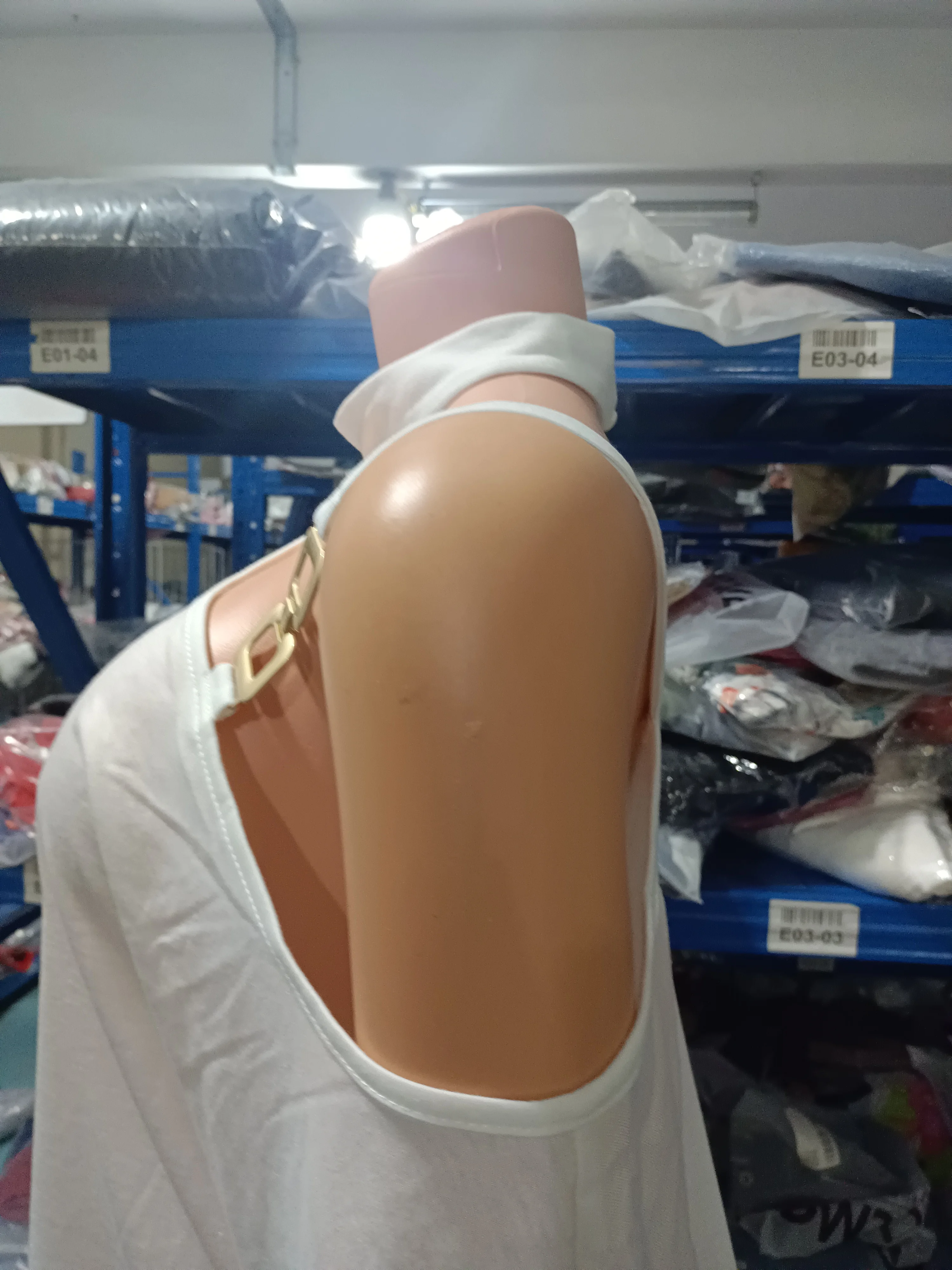 Metal Decorative Cold Shoulder Women’s Top 2023 Summer Fashion White T-shirt Casual T-shirt