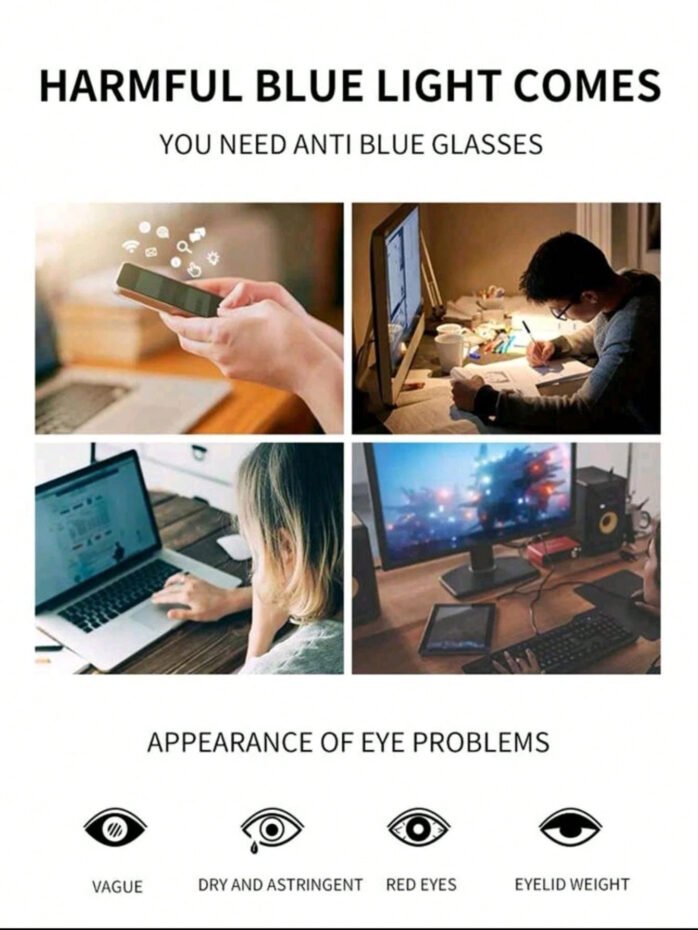 **Functional and Protective:** In today’s digital age, protecting your eyes from blue light is more important than ever. Whether you’re working on a computer, browsing on your phone, or watching TV, these glasses provide the necessary protection to keep your eyes healthy. The blue light blocking technology helps to reduce eye strain, headaches, and improve sleep quality by minimizing exposure to blue light.