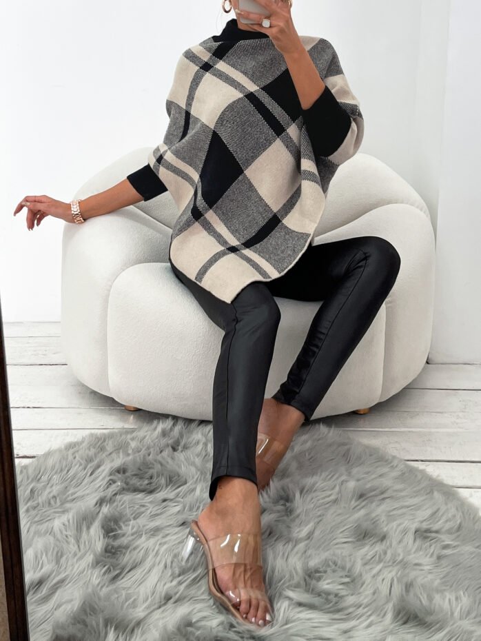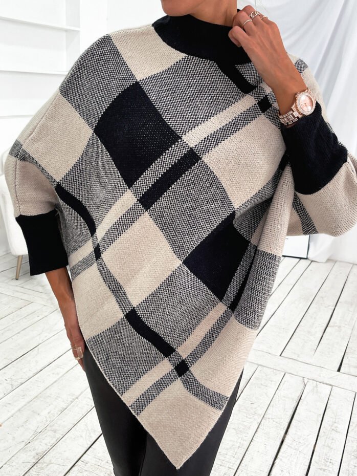Be the first to review “Mock Neck Plaid Knit Poncho” Cancel reply
