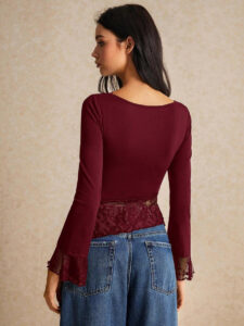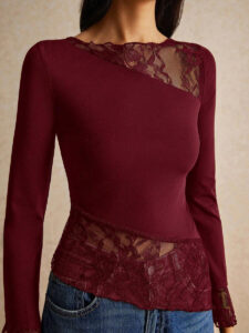 Made from 94% polyester and 6% elastane, its medium-stretch knitted fabric hugs your shape while keeping you comfortable all day. The semi-sheer lace adds a hint of allure, making it perfect for Fall evenings, Halloween events, or casual nights out.
