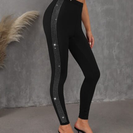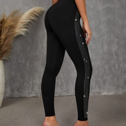 Color Black Style Casual Pattern Type Plain Length Cropped Details Rhinestone Type Regular Fabric Medium Stretch Material Knitted Fabric Composition