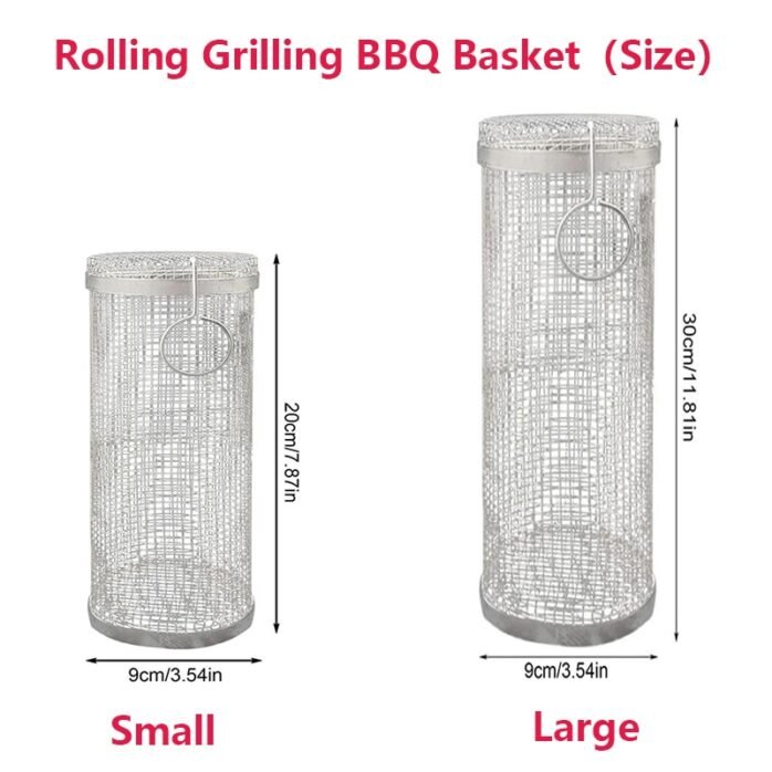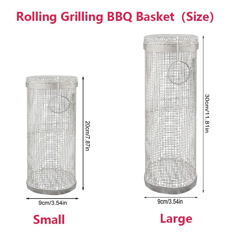 New Rolling Grilling BBQ Basket Stainless Steel Leakproof Mesh Barbecue Rack Outdoor Picnic Camping Simple Cylindrical BBQ Grill