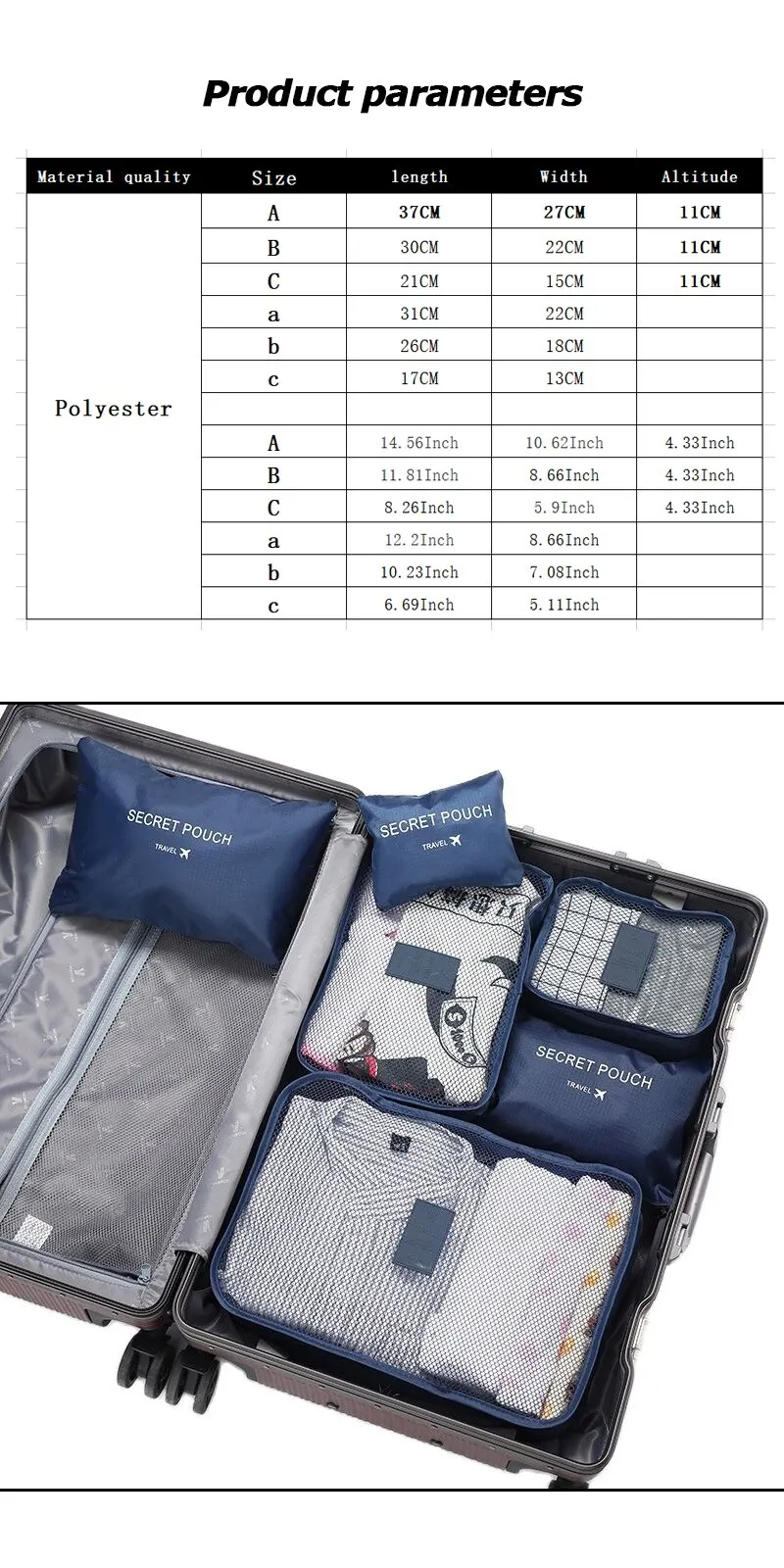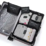 1. 6 different sizes bag for clothes, shoes, toothbrushes, makeup. Anti-moth, good permeability.The suitcase bag for luggage storage has a perforated design that allows for good ventilation and keeps clothes smelling clean and fresh.
