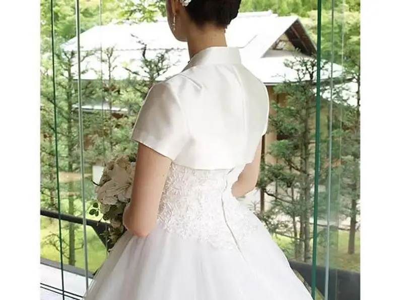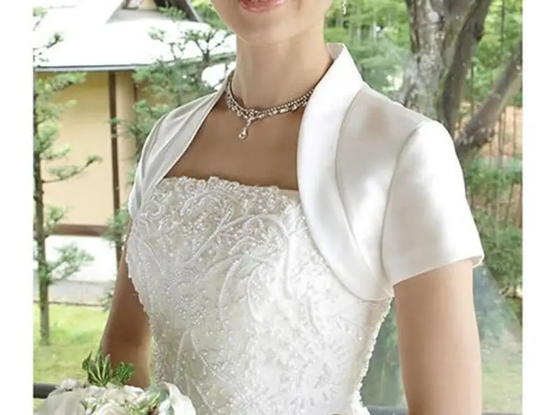 Satin Bridal Jacket with Collar – Short Sleeve Wedding Cape Shrug - Cattyloveline.net
