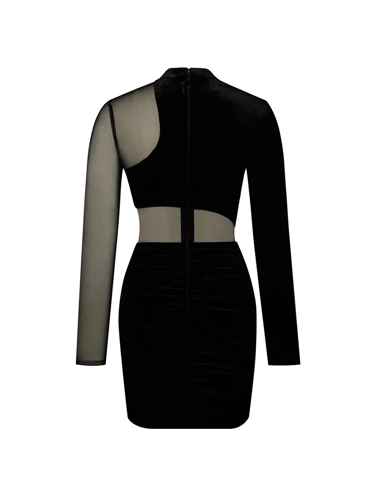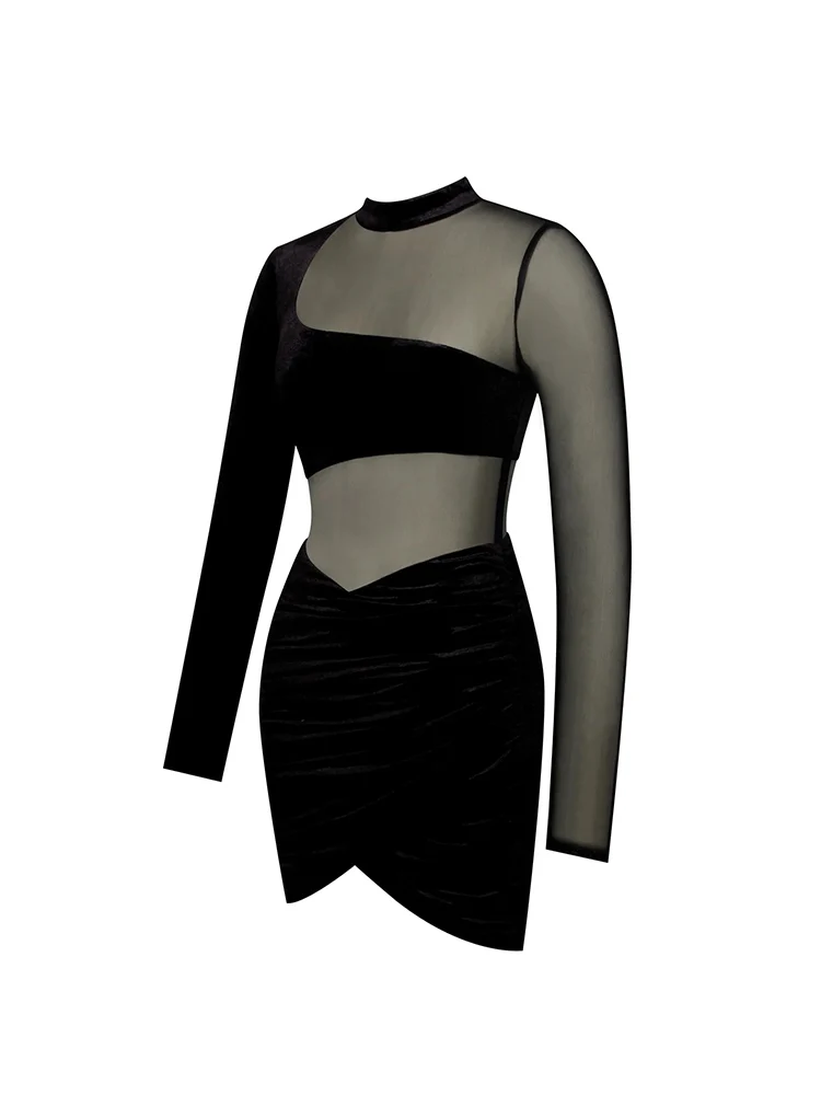 See-through Velvet Women’s Nightclub Prom Slim Party Dress