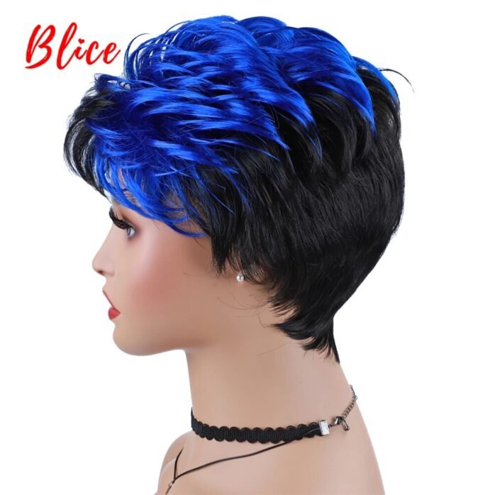 Blice Synthetic Hair Mix Color Wigs Short Natural Wavy For Black Women Free Shipping Heat Resistant Wig 1B/Blue Daily