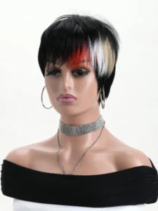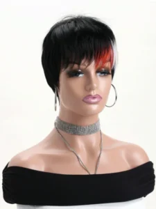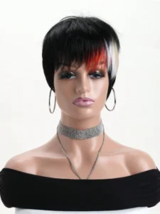 Synthetic Short Pixie Cut Highlight Straight Wig With Bang For Women
