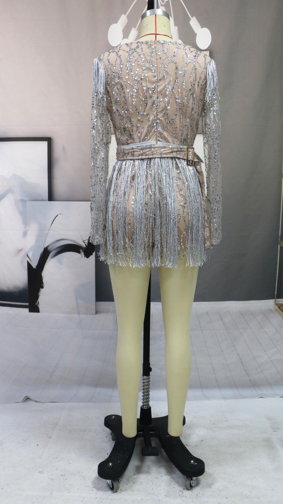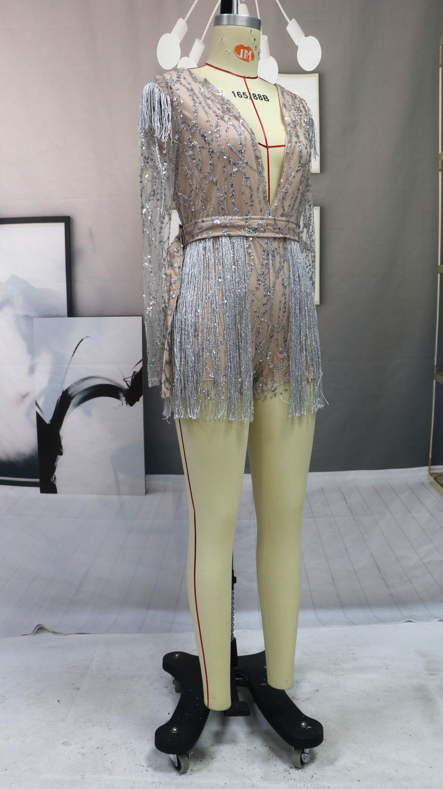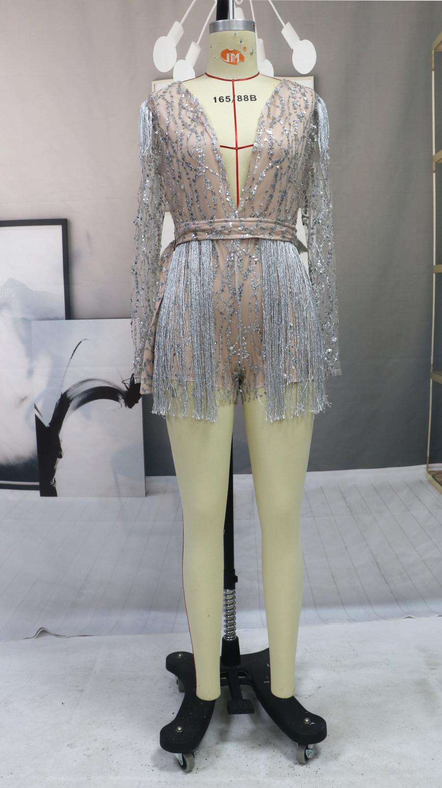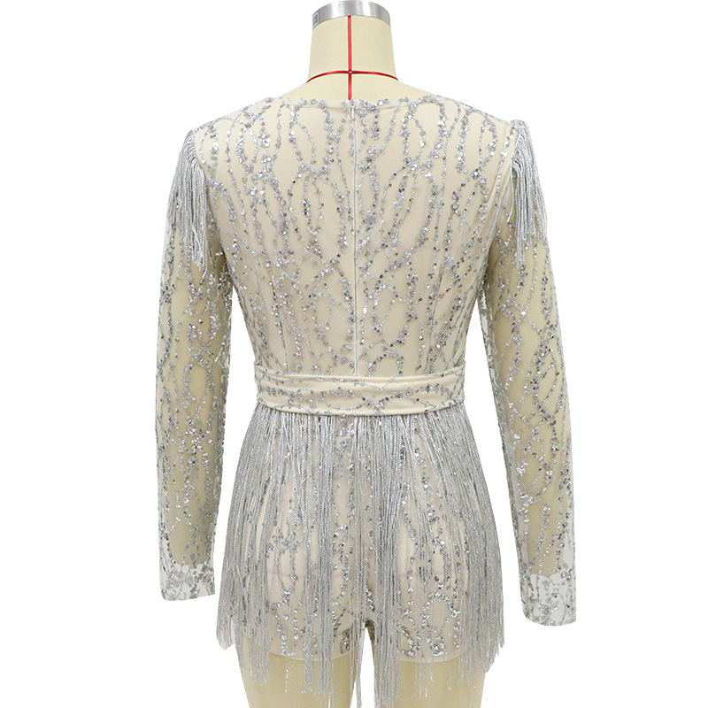 Sparkling Sequin Romper Women Sexy Sheer Deep V Size Night Club Slim Jumpsuit