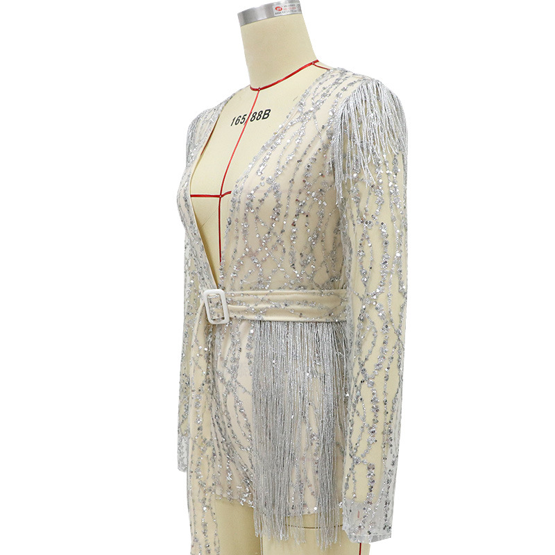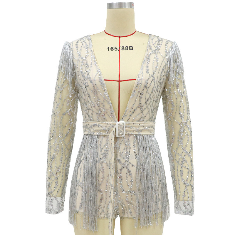 Home Women Apparel Women Clothing Sparkling Sequin Romper Women Sexy Sheer Deep V Size Night Club Slim Jumpsuit