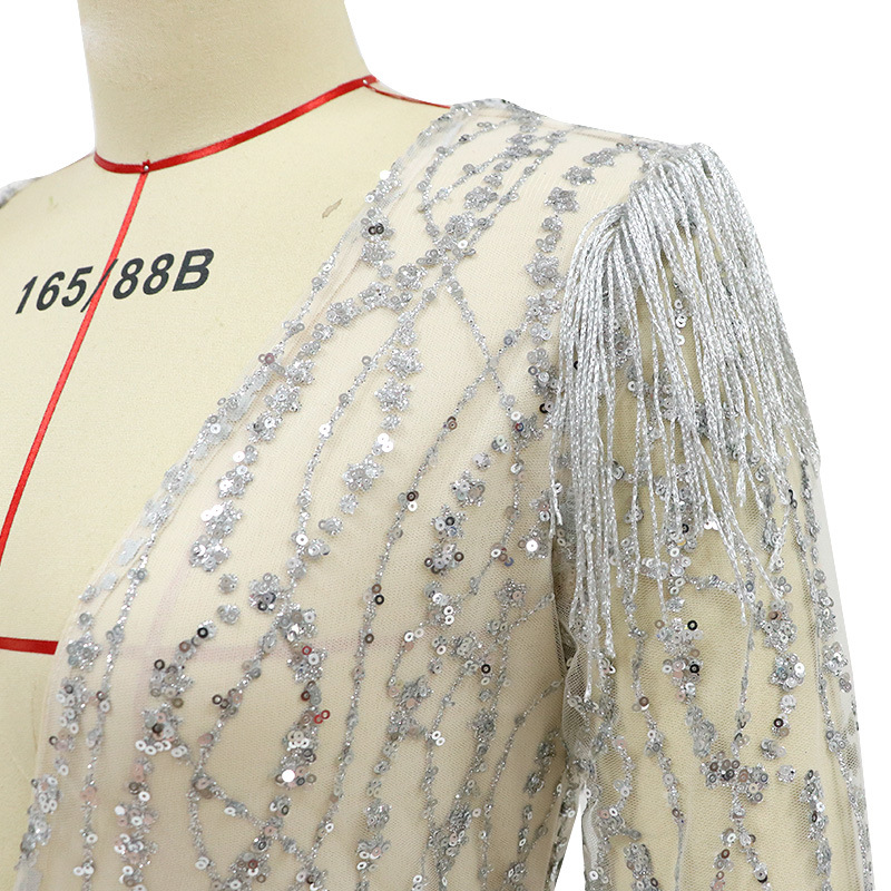 Elegant Split Thigh Party Dress with Glitter Mesh Ruffle Hem for Women