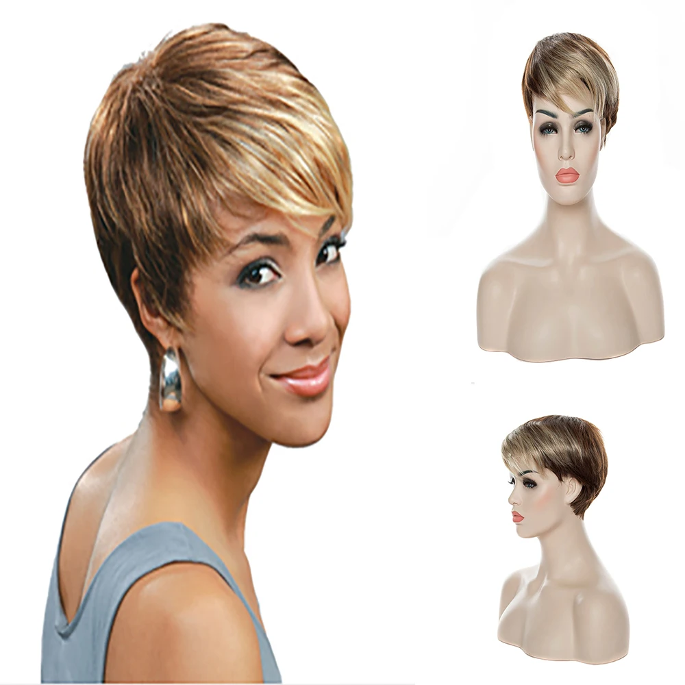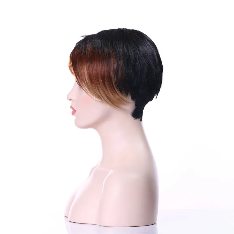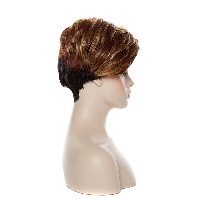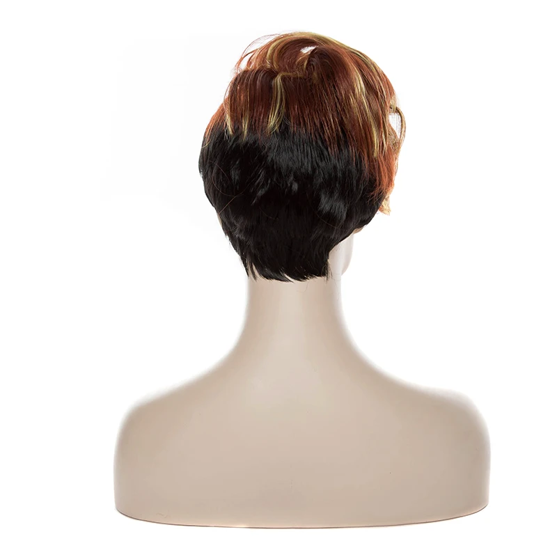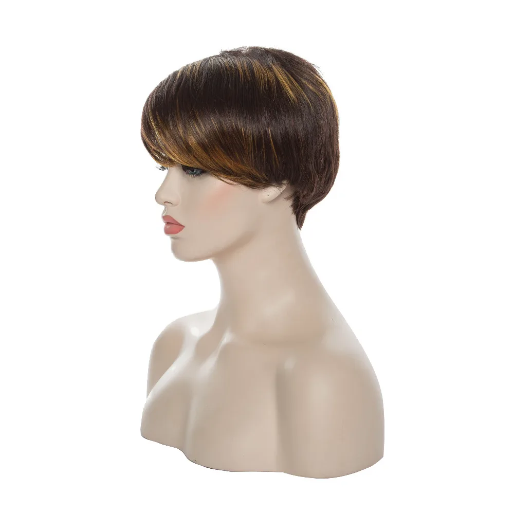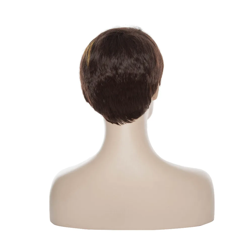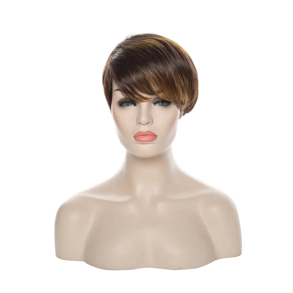 Synthetic Short Pixie Cut Highlight Straight Wig With Bang For Women