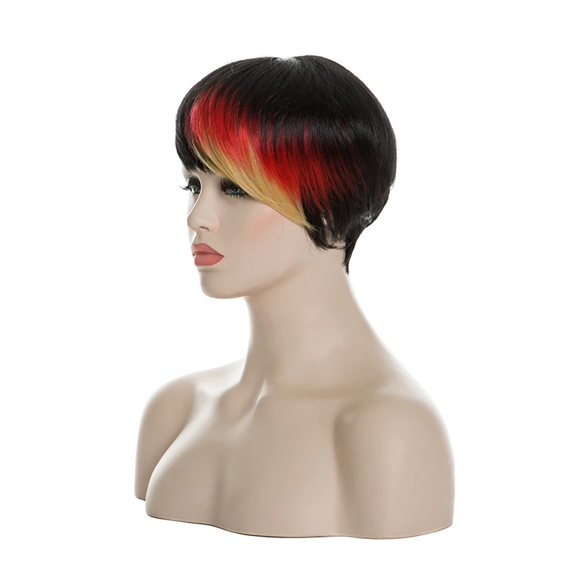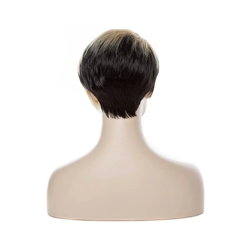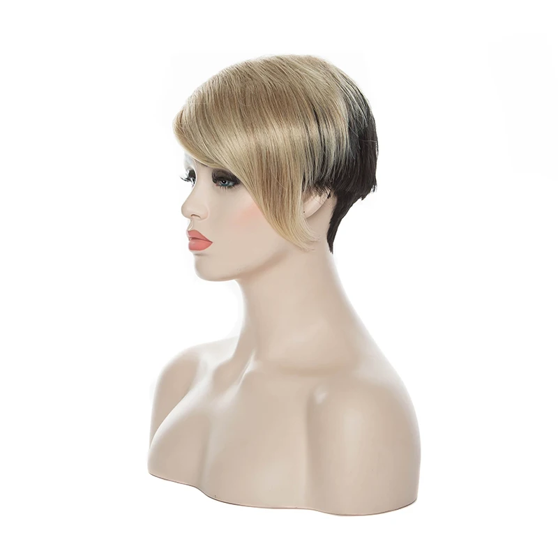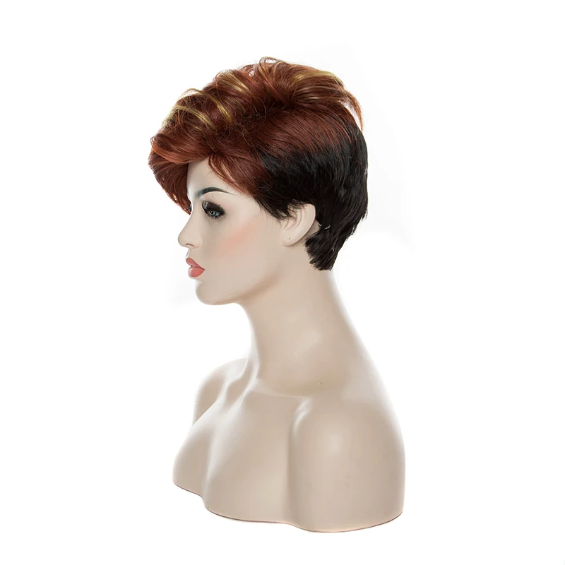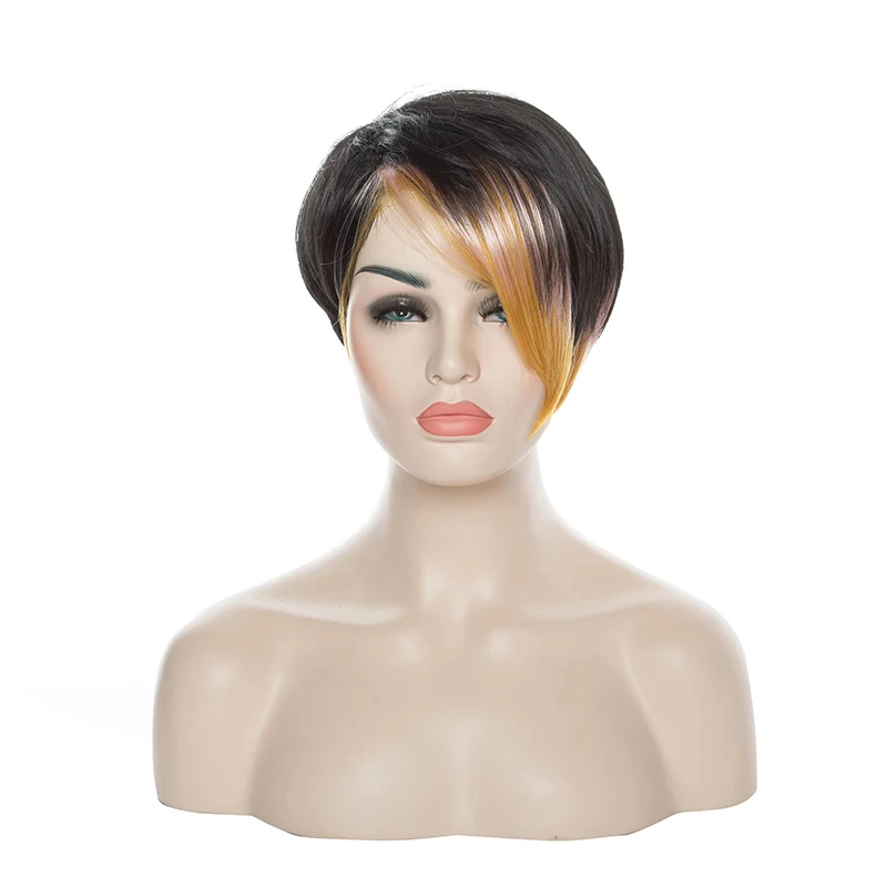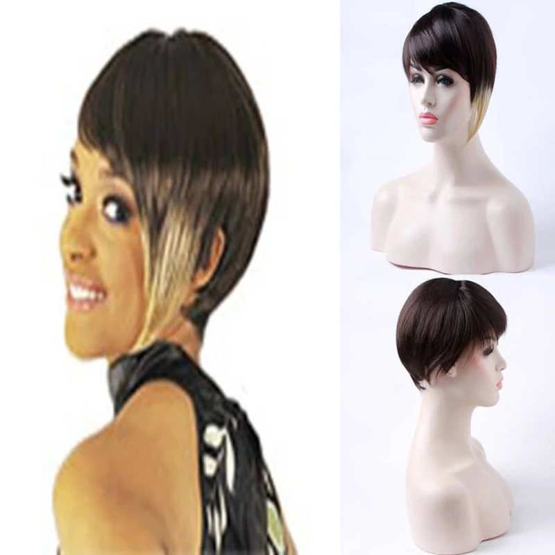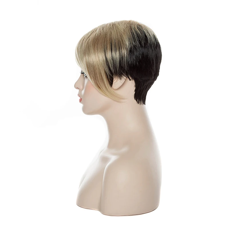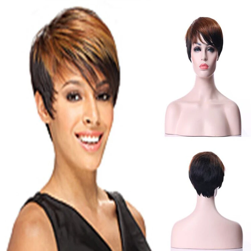 Synthetic Short Pixie Cut Highlight Straight Wig With Bang For Women
