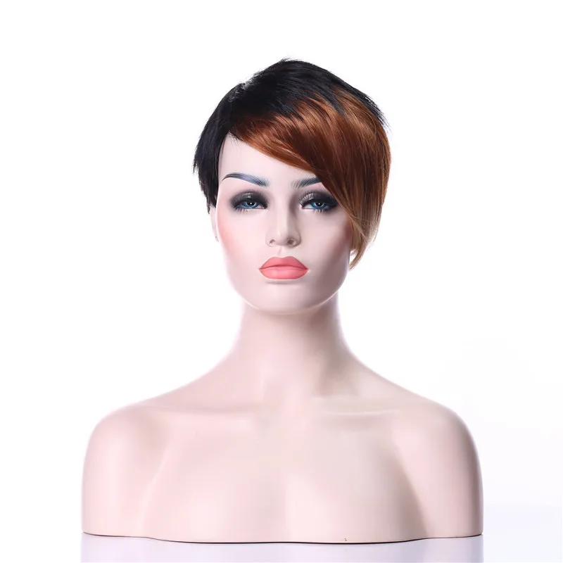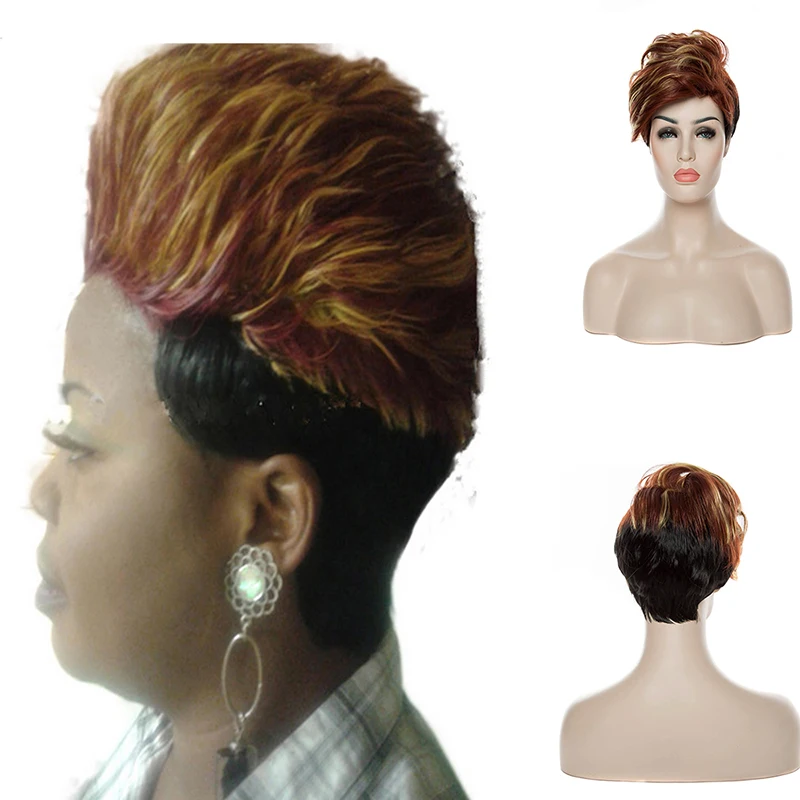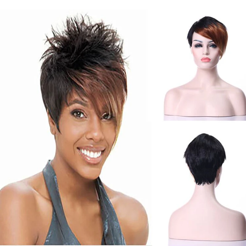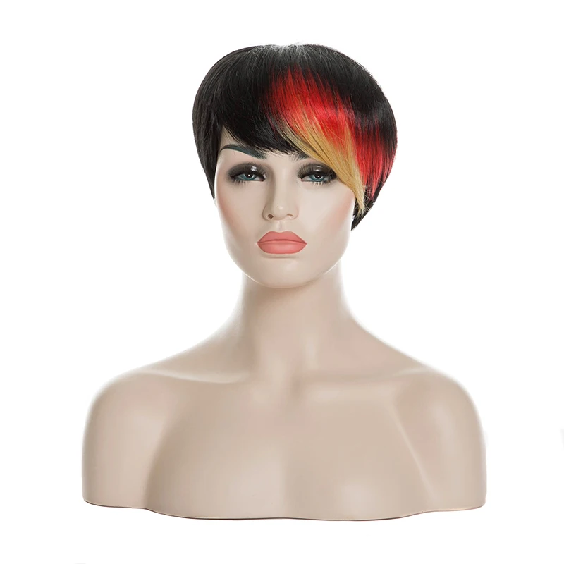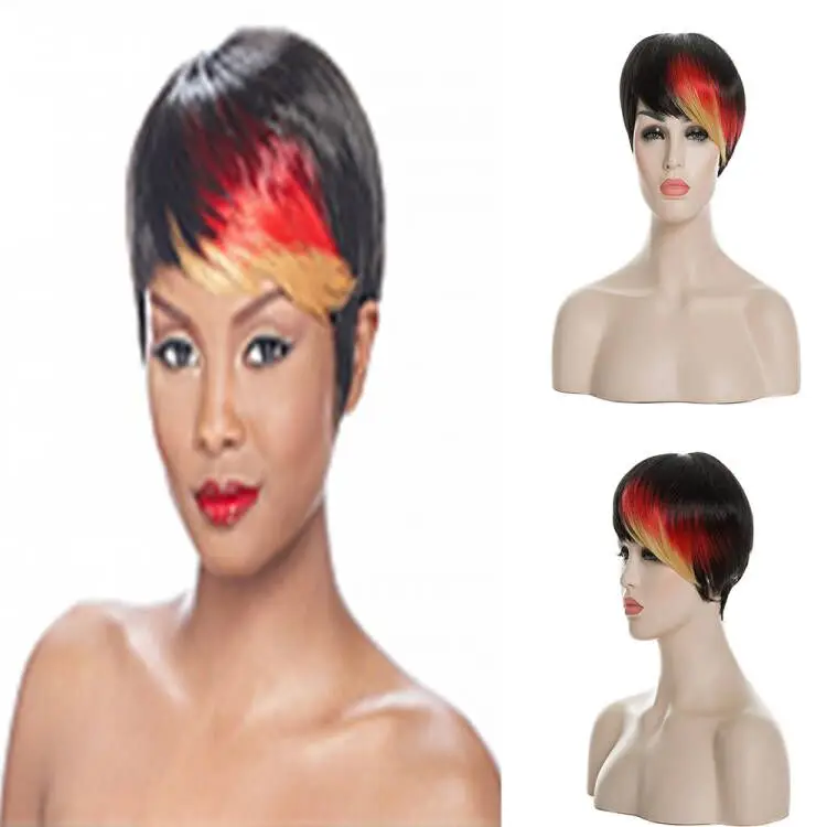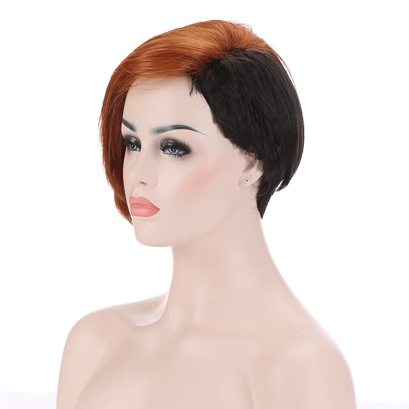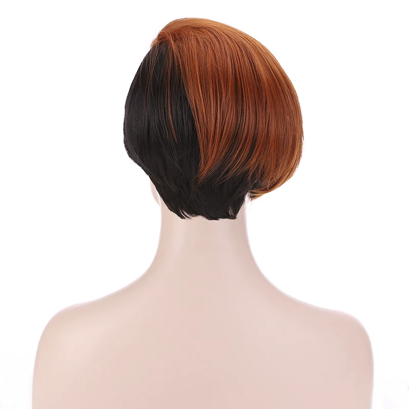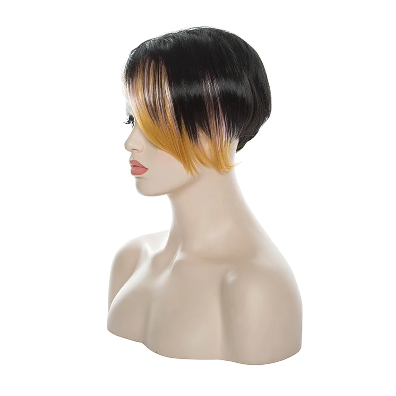 Synthetic Short Pixie Cut Highlight Straight Wig With Bang For Women
