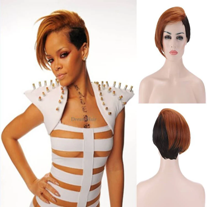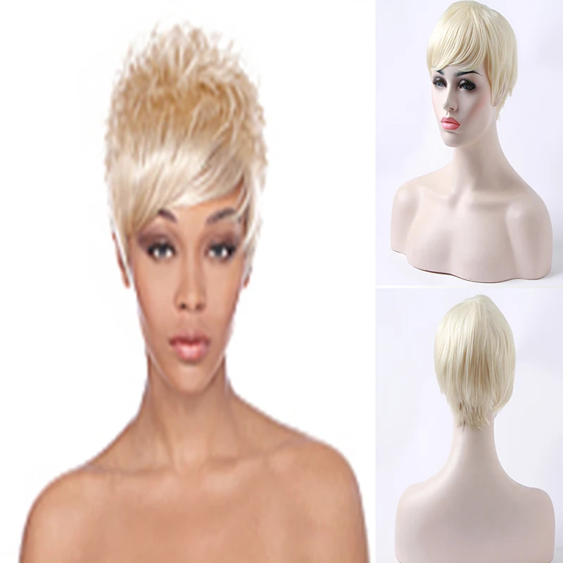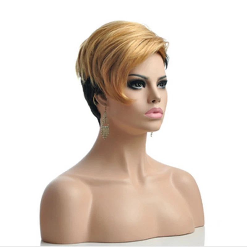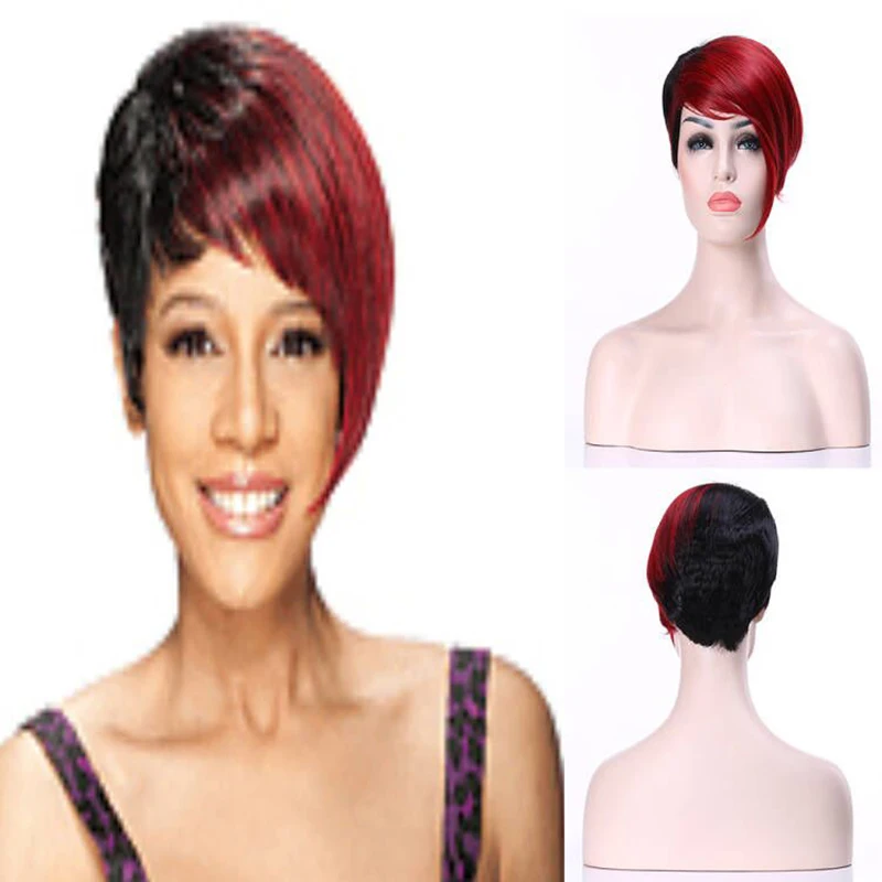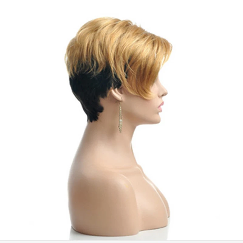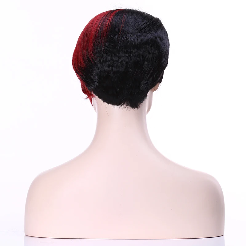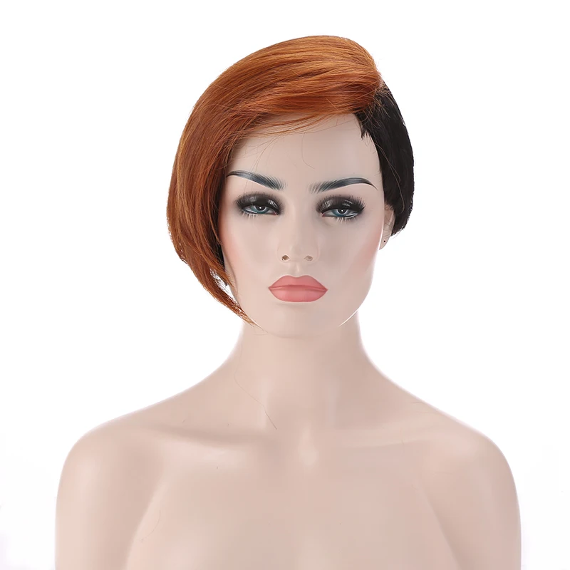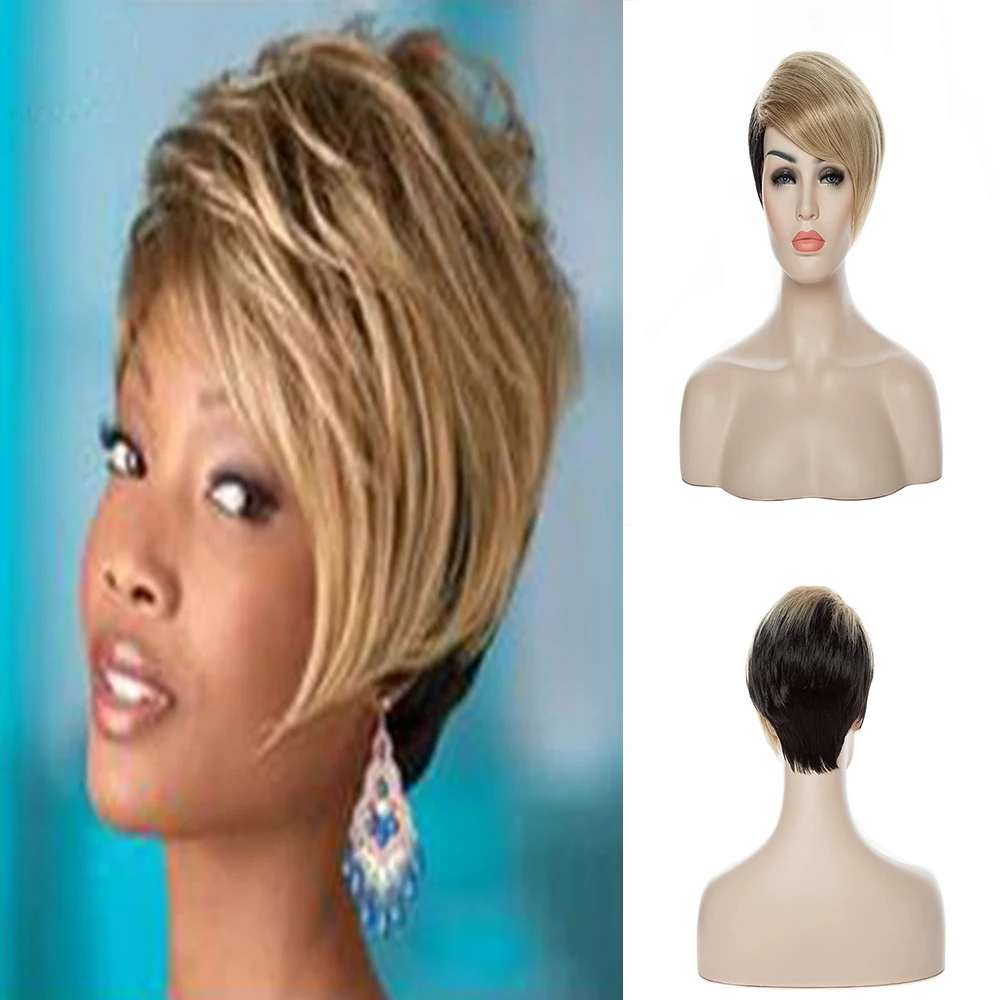 Synthetic Short Pixie Cut Highlight Straight Wig With Bang For Women