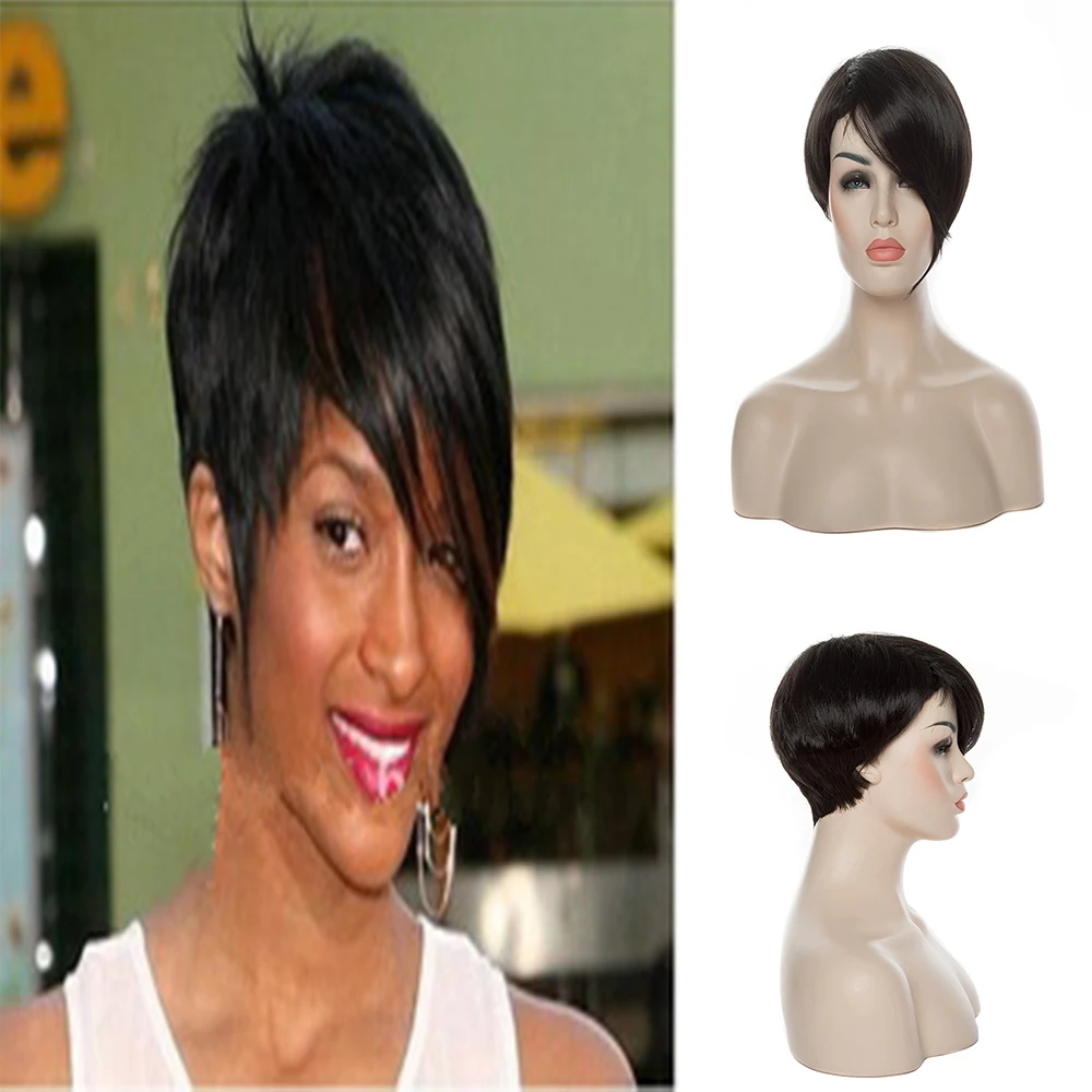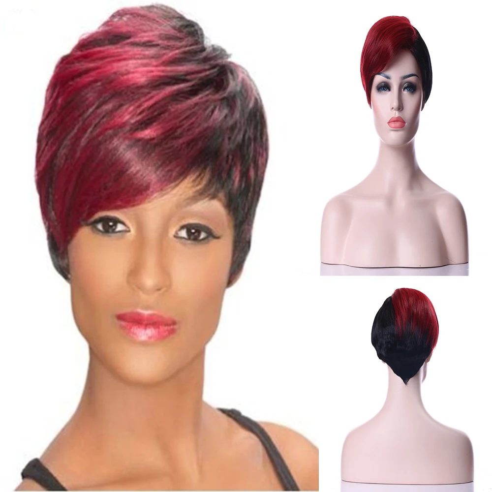 Heat Resistant Synthetic Short Pixie Cut Wigs with Bangs for Black Women
