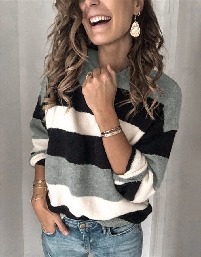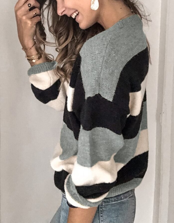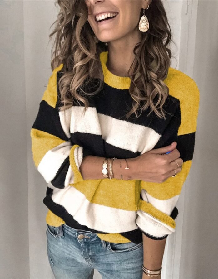 Women’s Autumn Winter Sweater In Mixed Colors Stripes Contrast In Colors