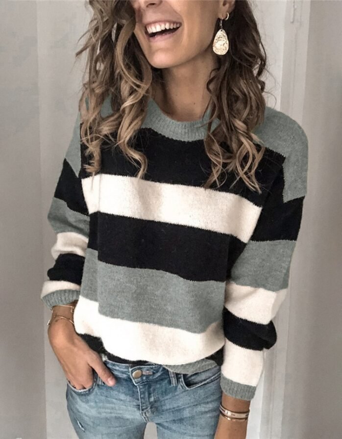 Home Women Apparel Women Clothing Women’s Autumn Winter Sweater In Mixed Colors Stripes Contrast In Colors