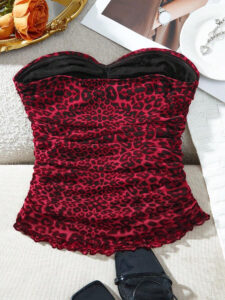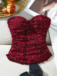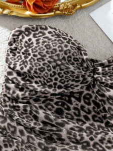 Make a statement with our Women’s Leopard Print Knit Mesh Camisole – Fitted Casual Top. This strapless, slim-fit camisole features ruched details, textured leopard print, and medium-stretch knitted fabric for a flattering, comfortable fit.