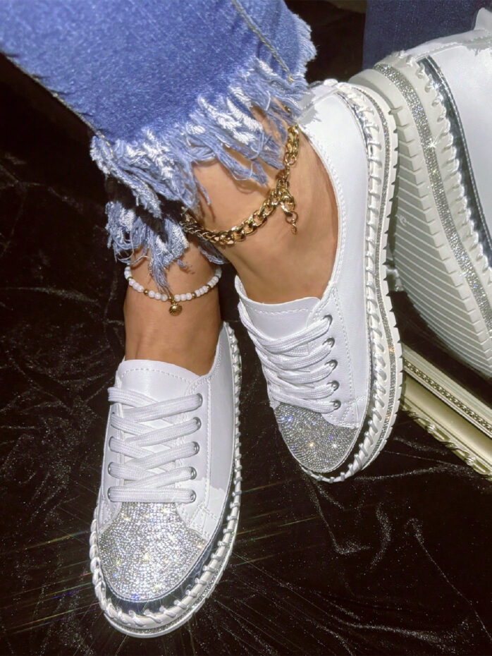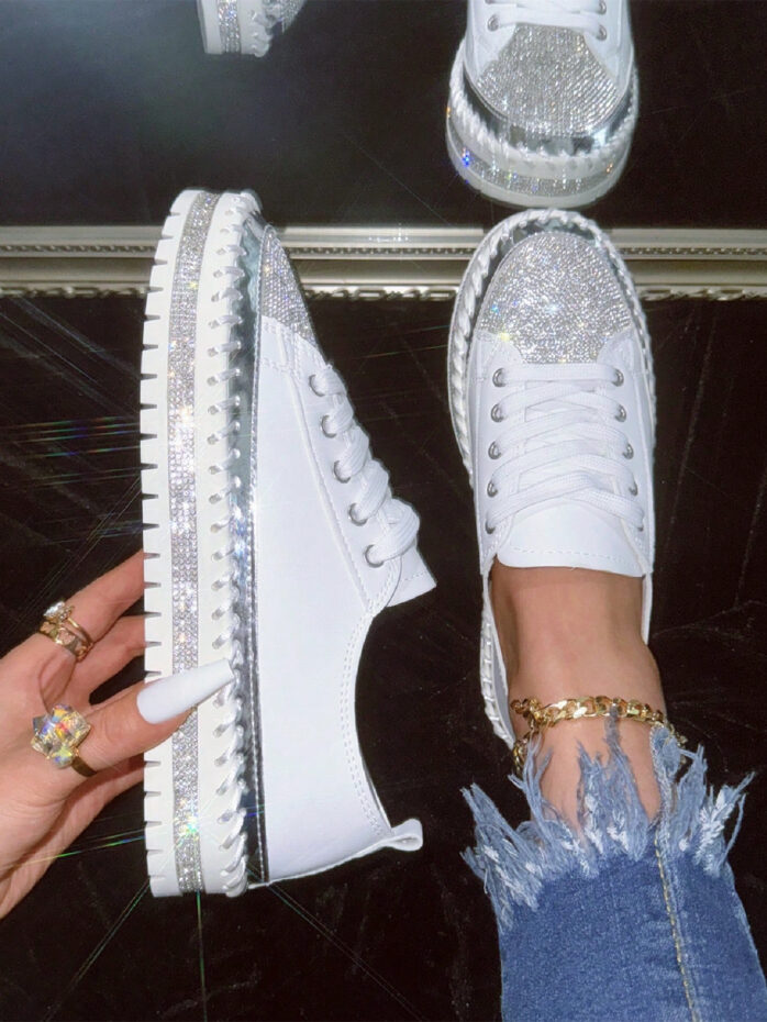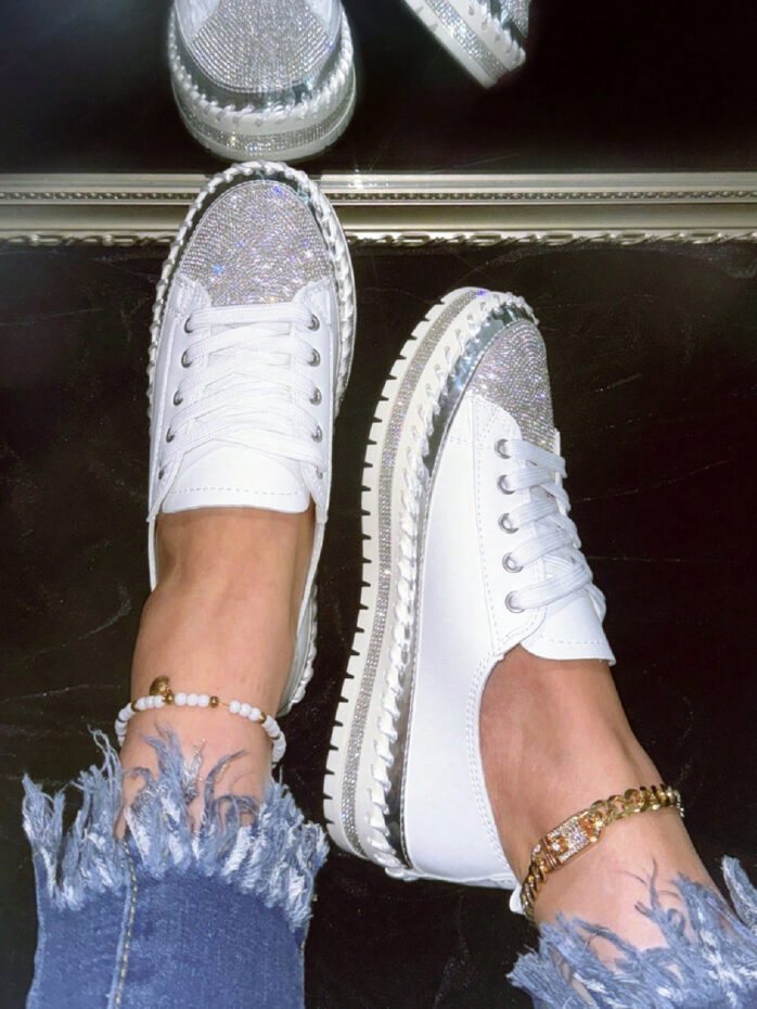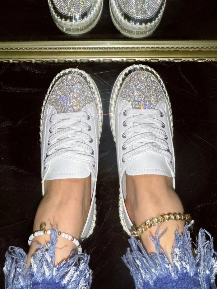 Women's Shiny Rhinestone Sneakers - Cattyloveline.net