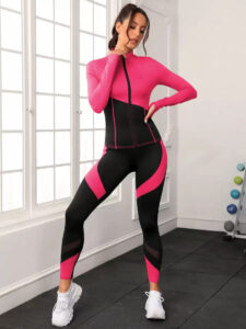 The colorblock mesh design adds breathable flair, while the sleek silhouette flatters every body type — perfect for running, yoga, or daily wear.