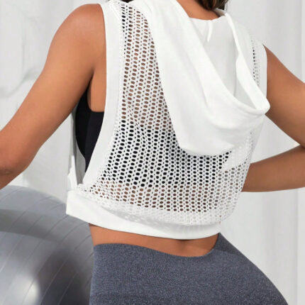 Color White Pattern Type Plain Details Drawstring Neckline Hooded Sleeve Length Sleeveless Length Crop Fabric Medium Stretch Material Fabric Composition